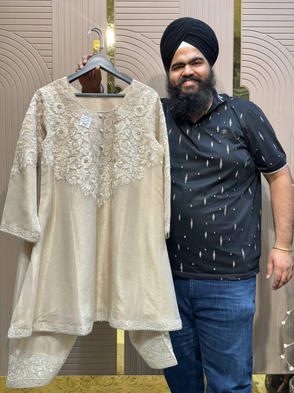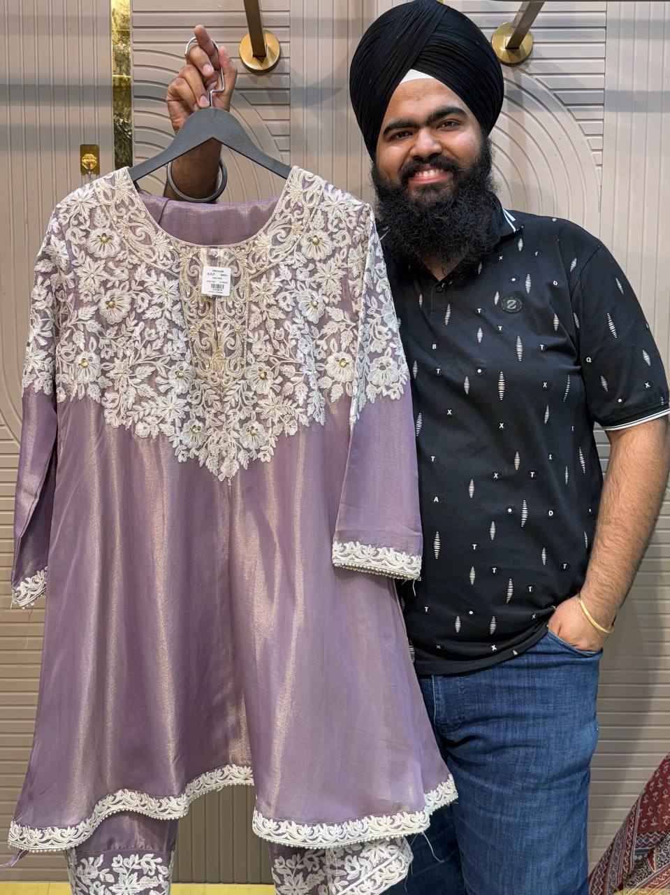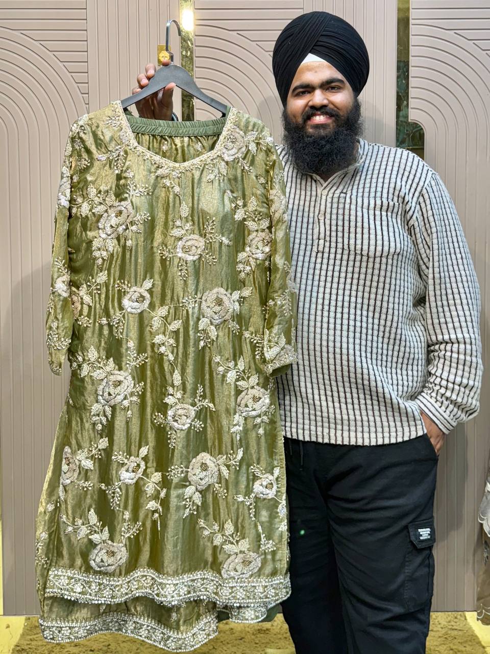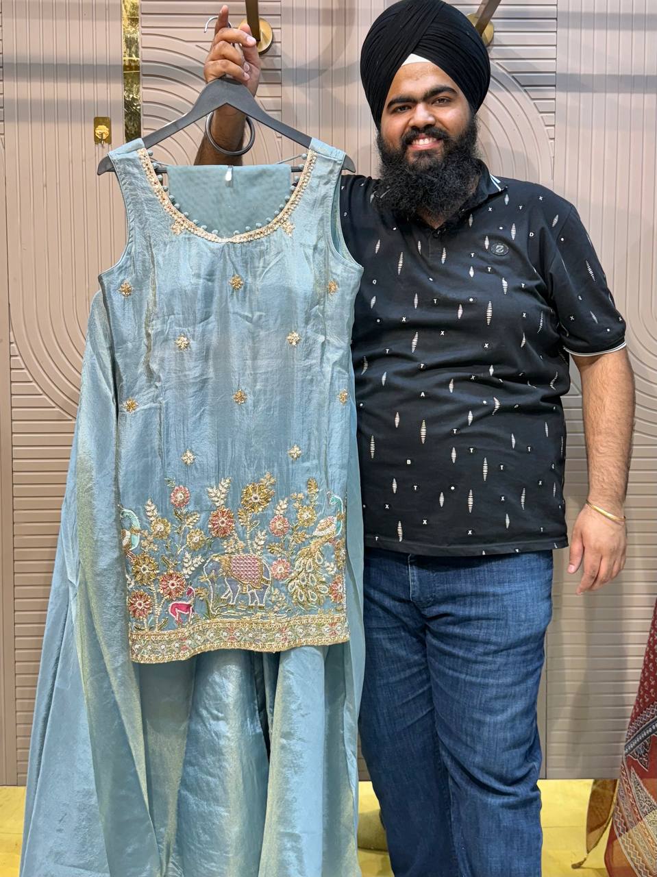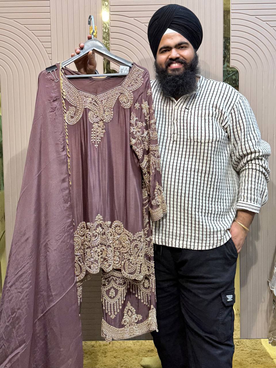 Glass Tissue Fabric Unstitched Suit ek soft, graceful aur luxurious ethnic creation hai, jo delicate glass tissue fabric par beautifully crafted applique work shirt aur dupatta ke saath design kiya gaya hai ✨👗