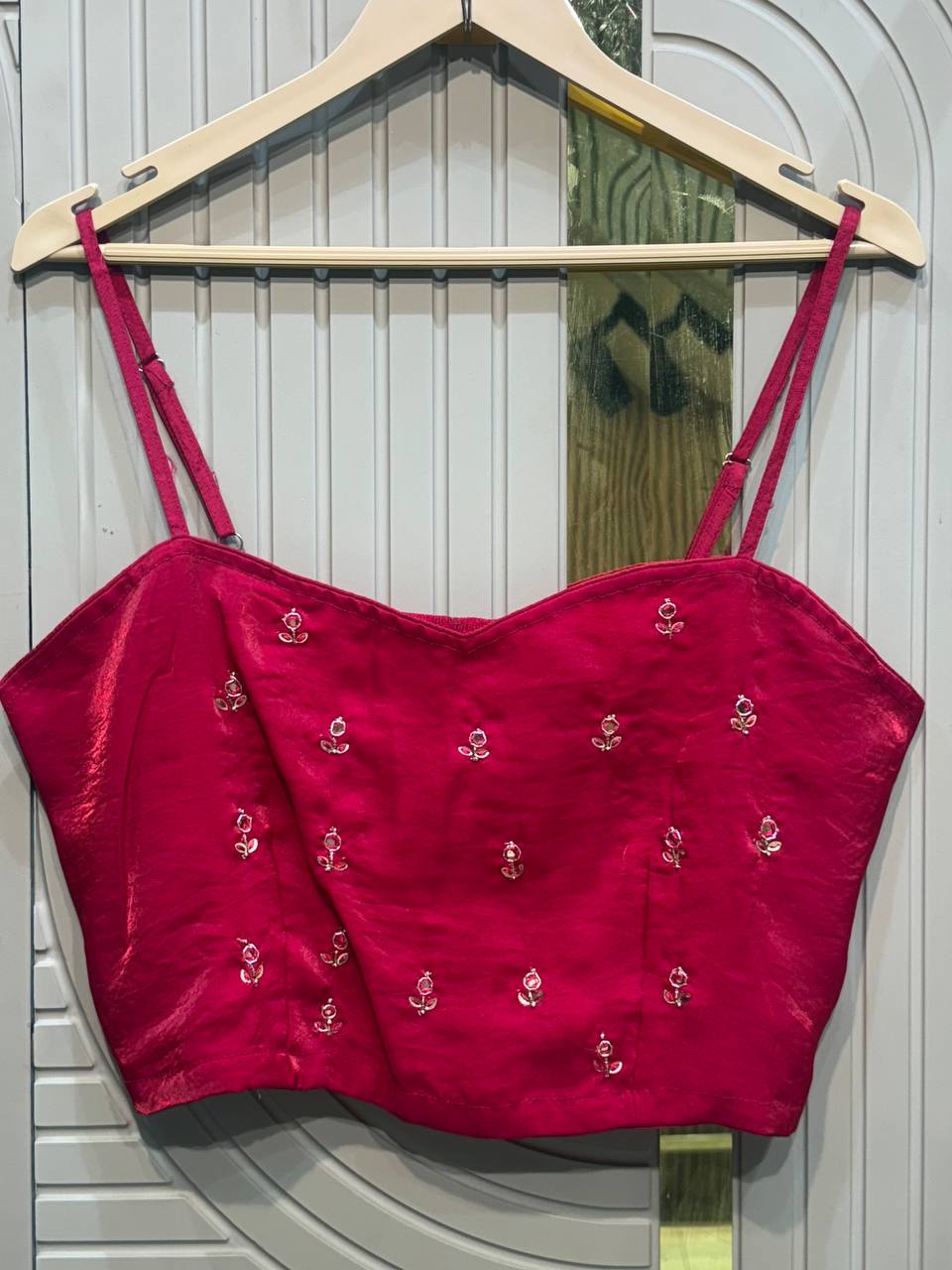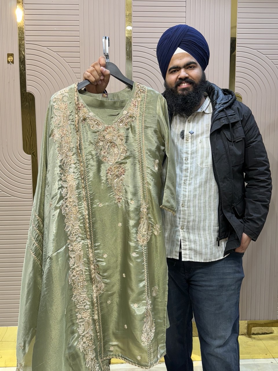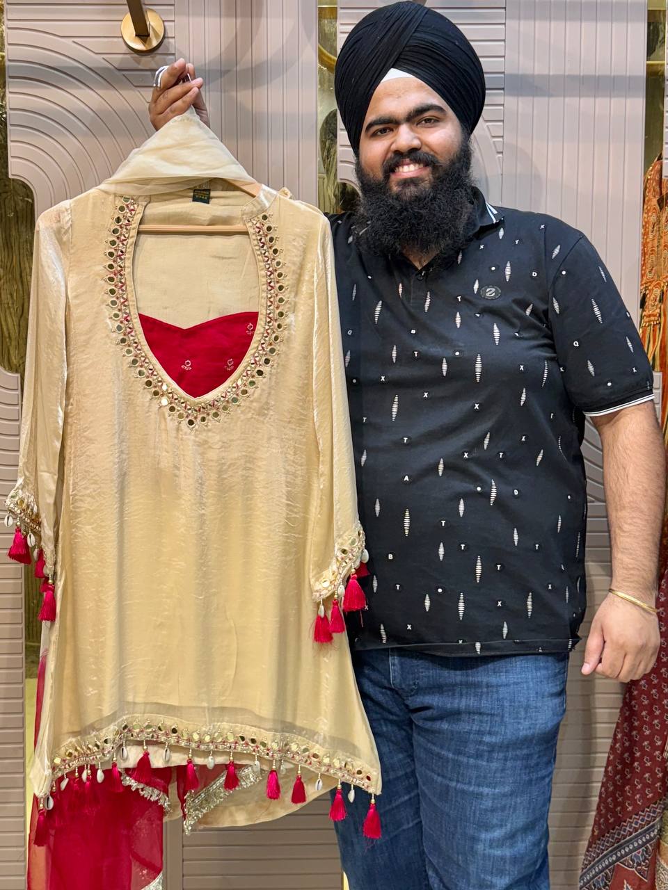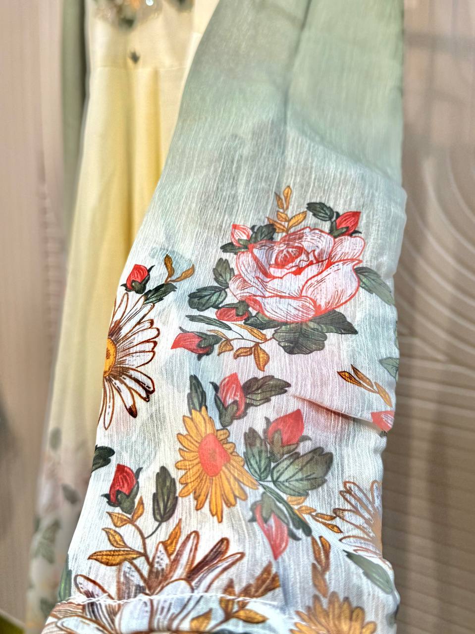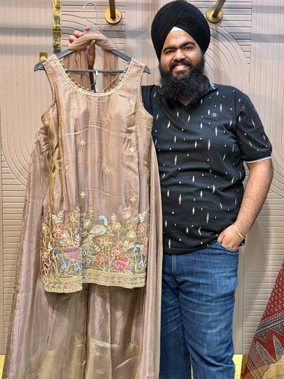 Glass Tissue Fabric Unstitched Suit ek soft, graceful aur luxurious ethnic creation hai, jo delicate glass tissue fabric par beautifully crafted applique work shirt aur dupatta ke saath design kiya gaya hai ✨👗