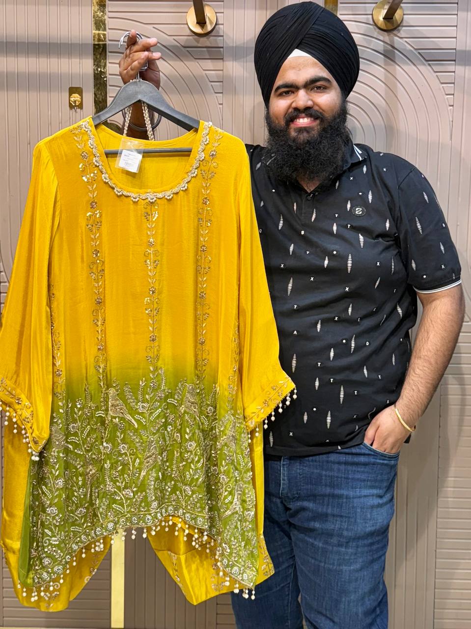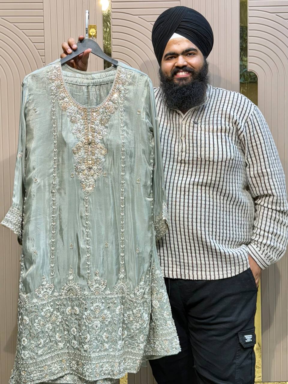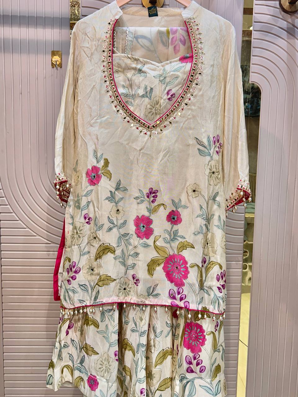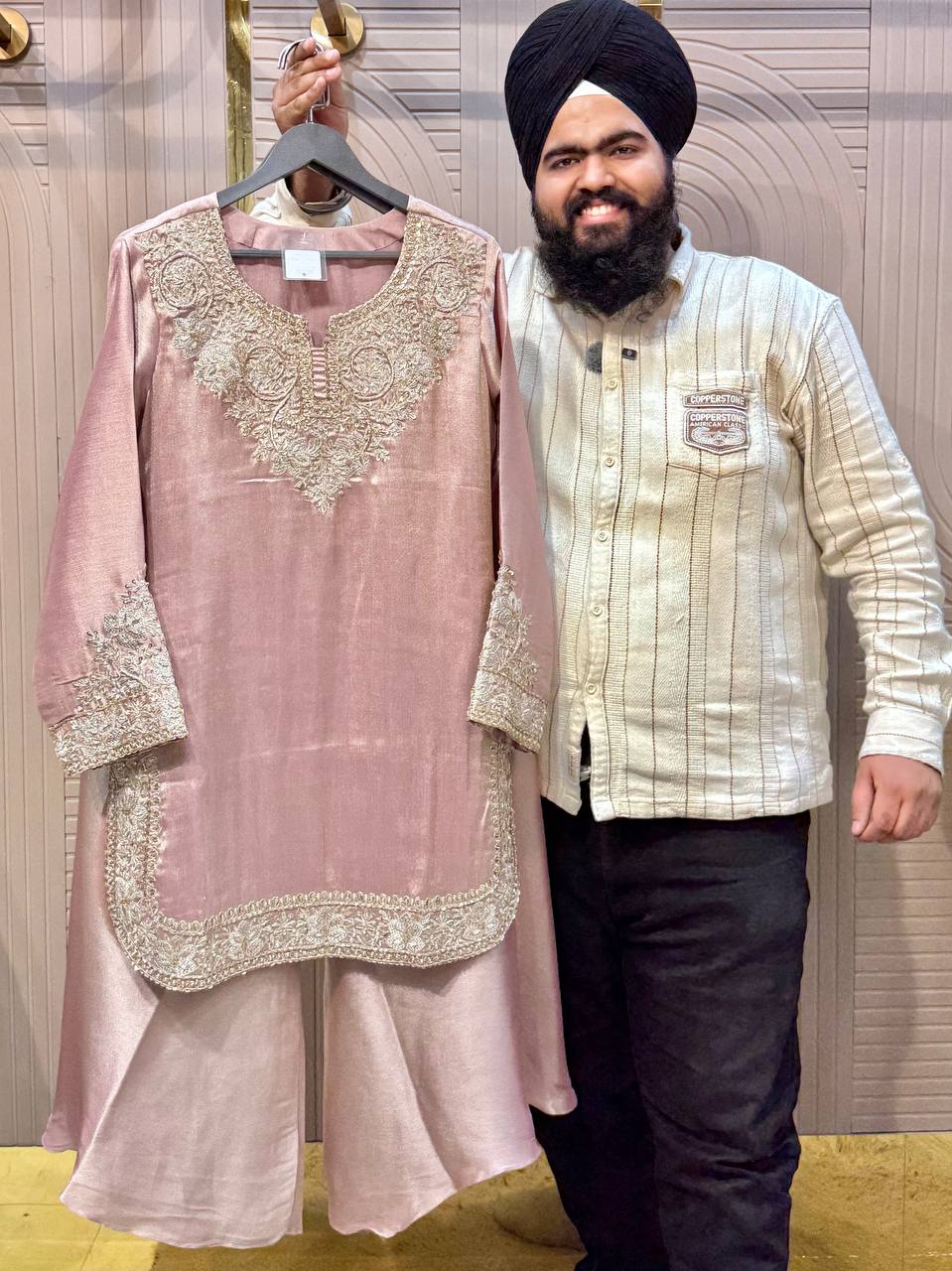 Heavy Beads Work Farshi Pant Set with Designer Shirt