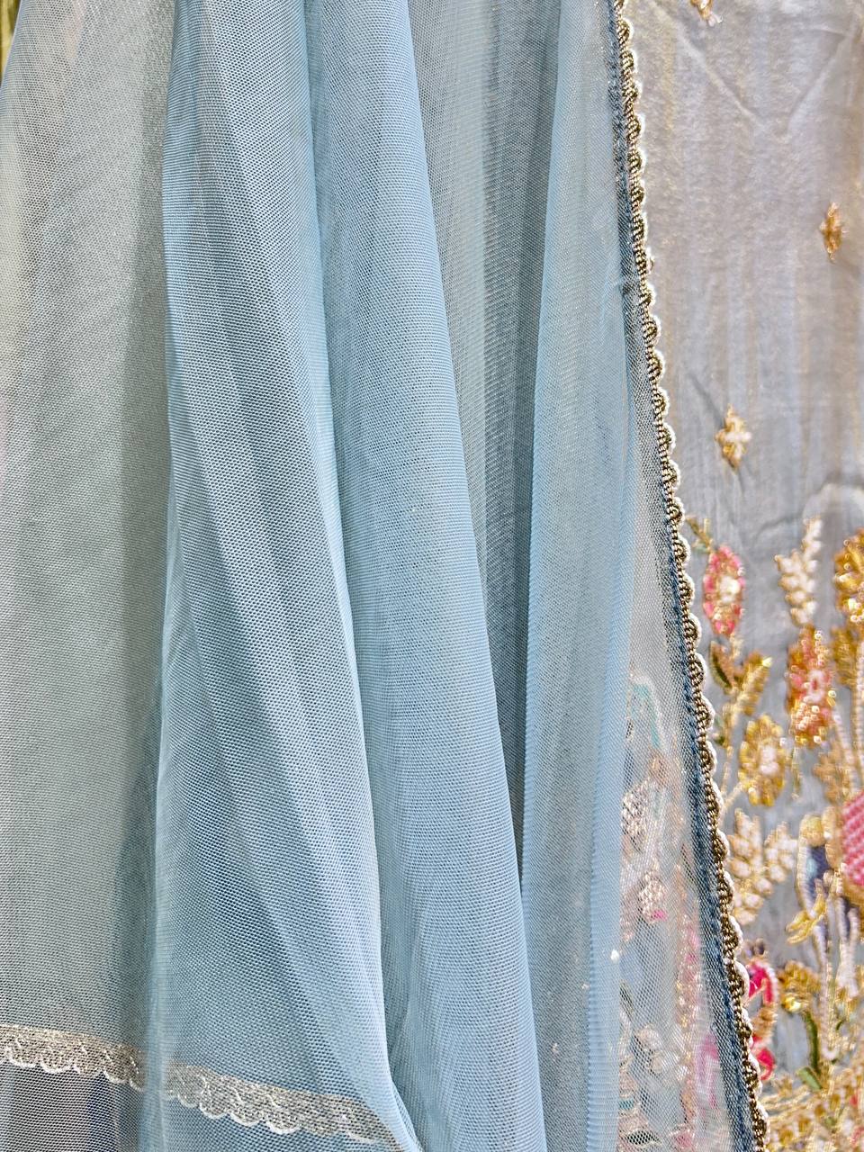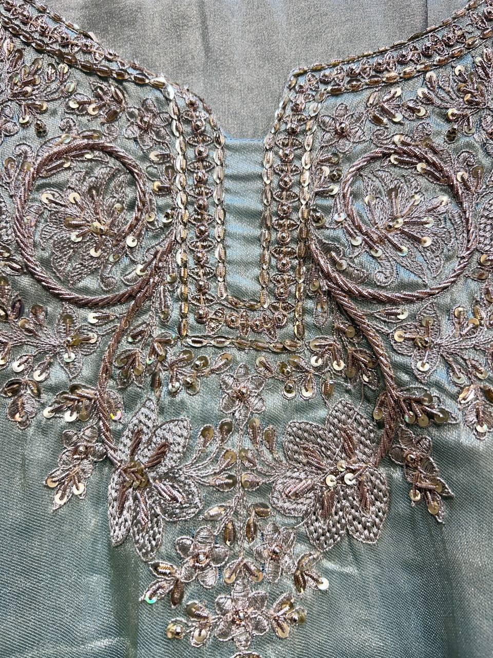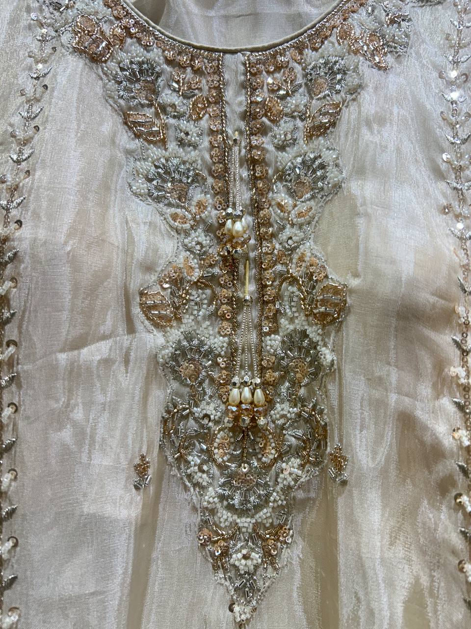 Flower Beads Work Sharara Set on Glass Tissue Fabric