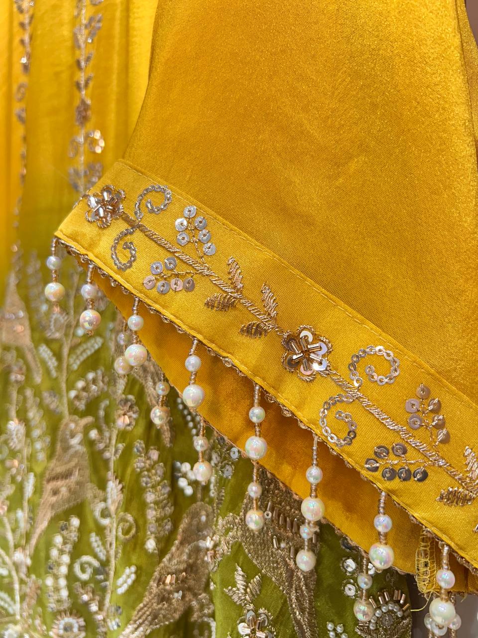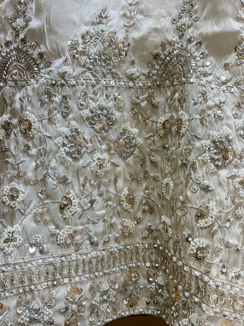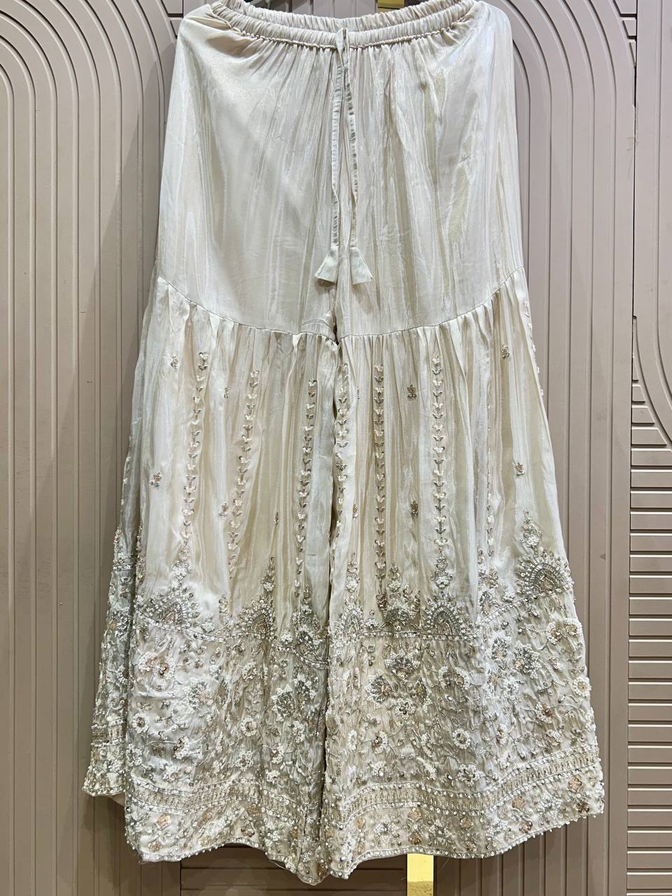 Flower Beads Work Sharara Set on Glass Tissue Fabric