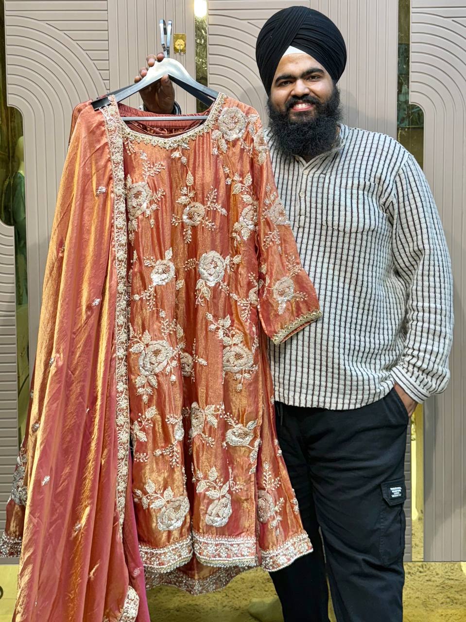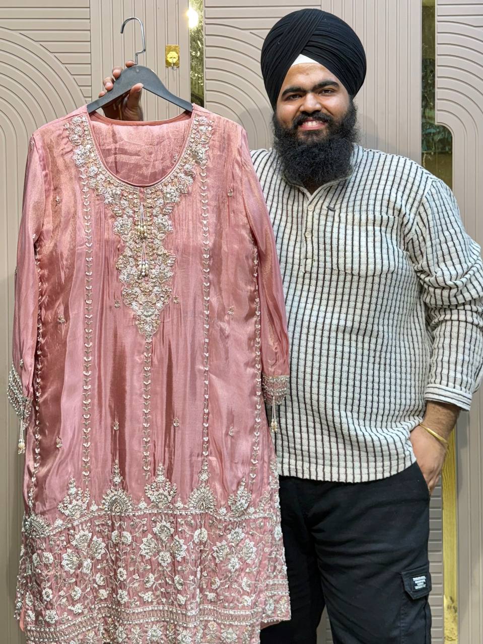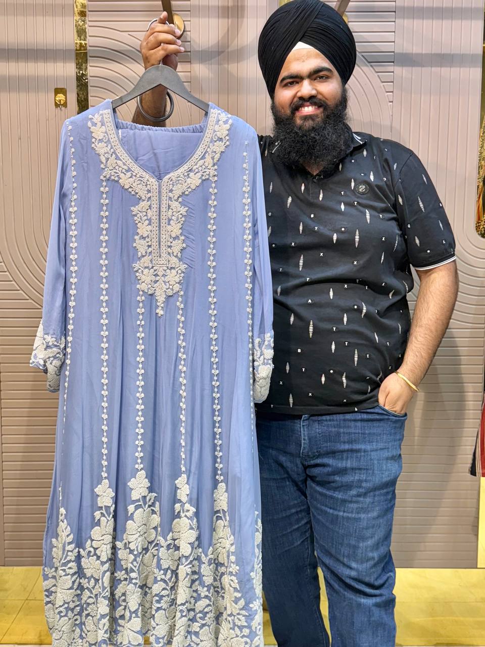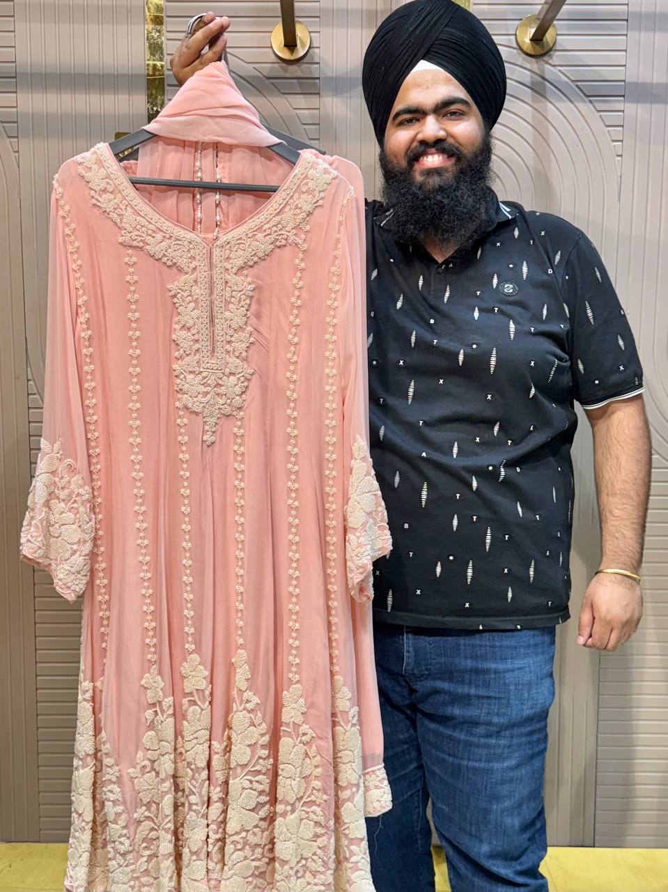 Front & Back Heavy Beads Work Anarkali Set with Dupatta
