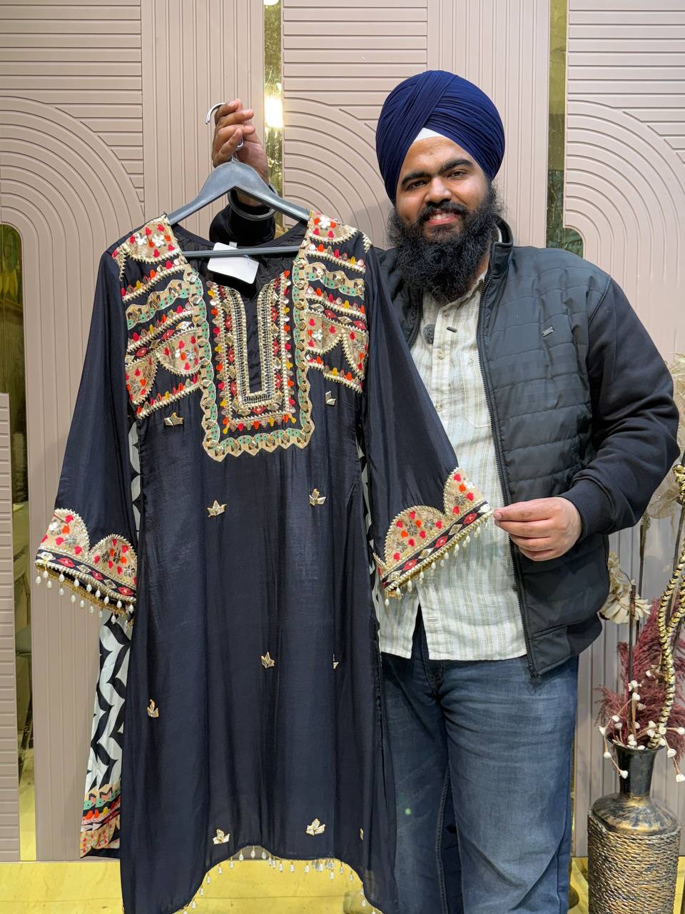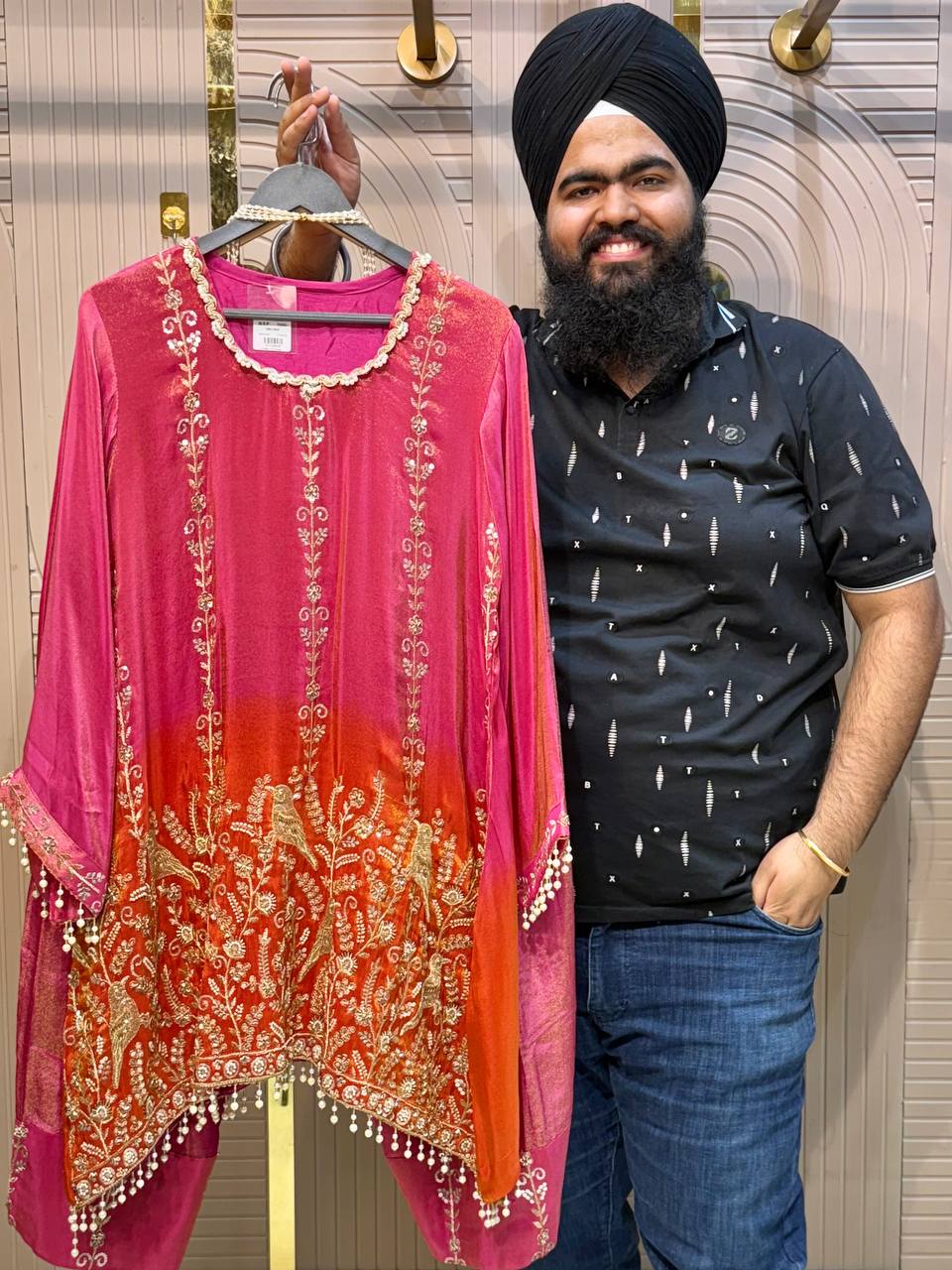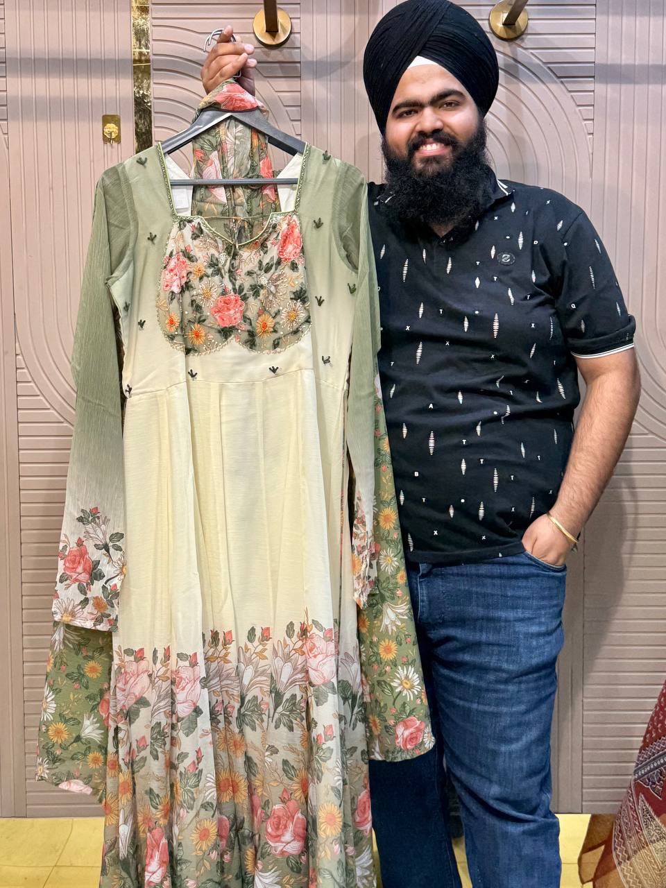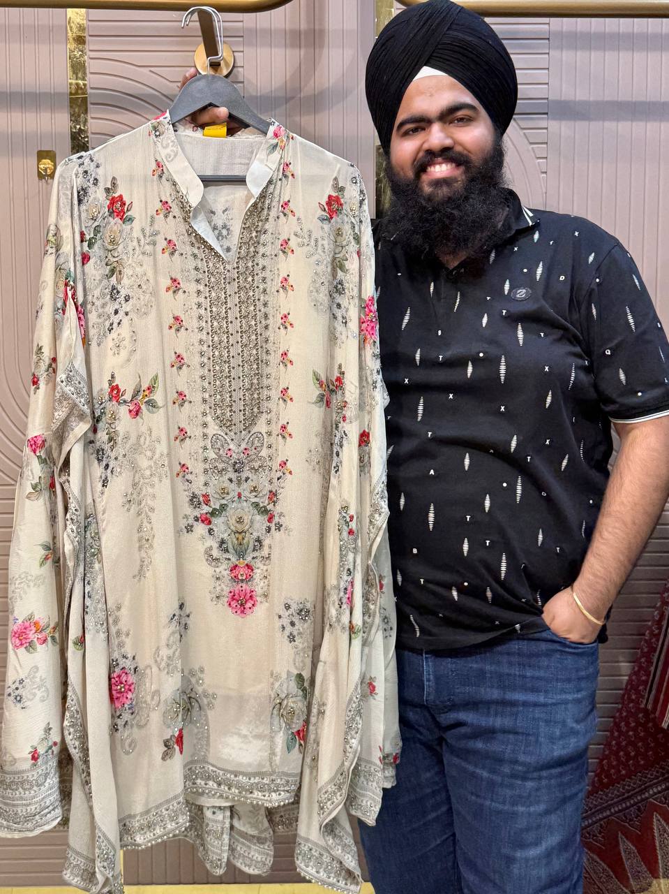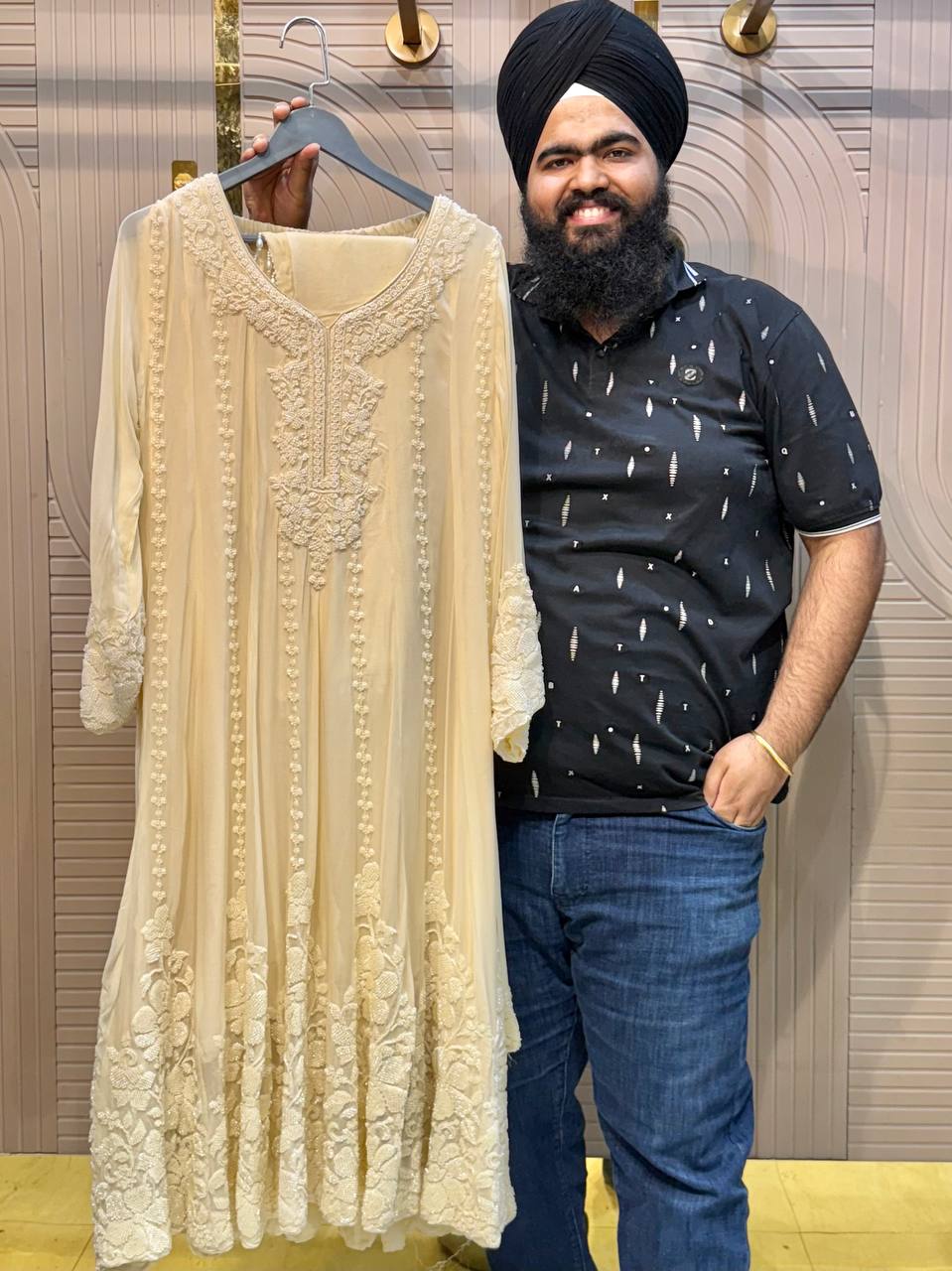 Front & Back Heavy Beads Work Anarkali Set with Dupatta