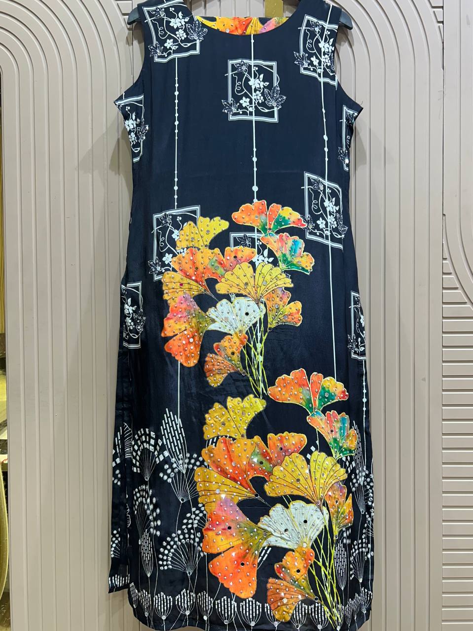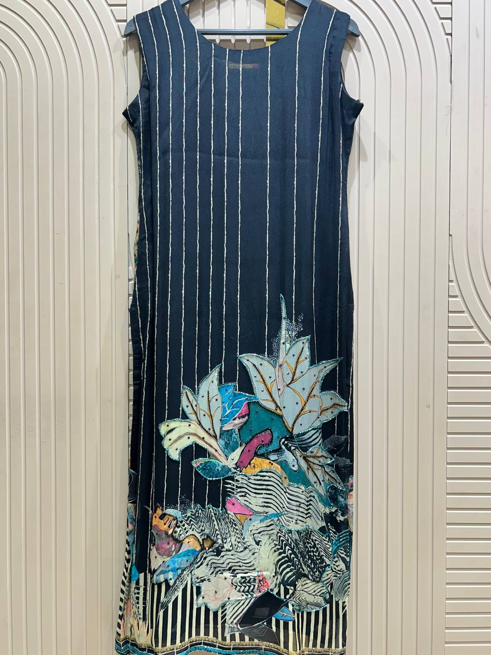 Sleeveless Embroidered Floral Work Western Style Article