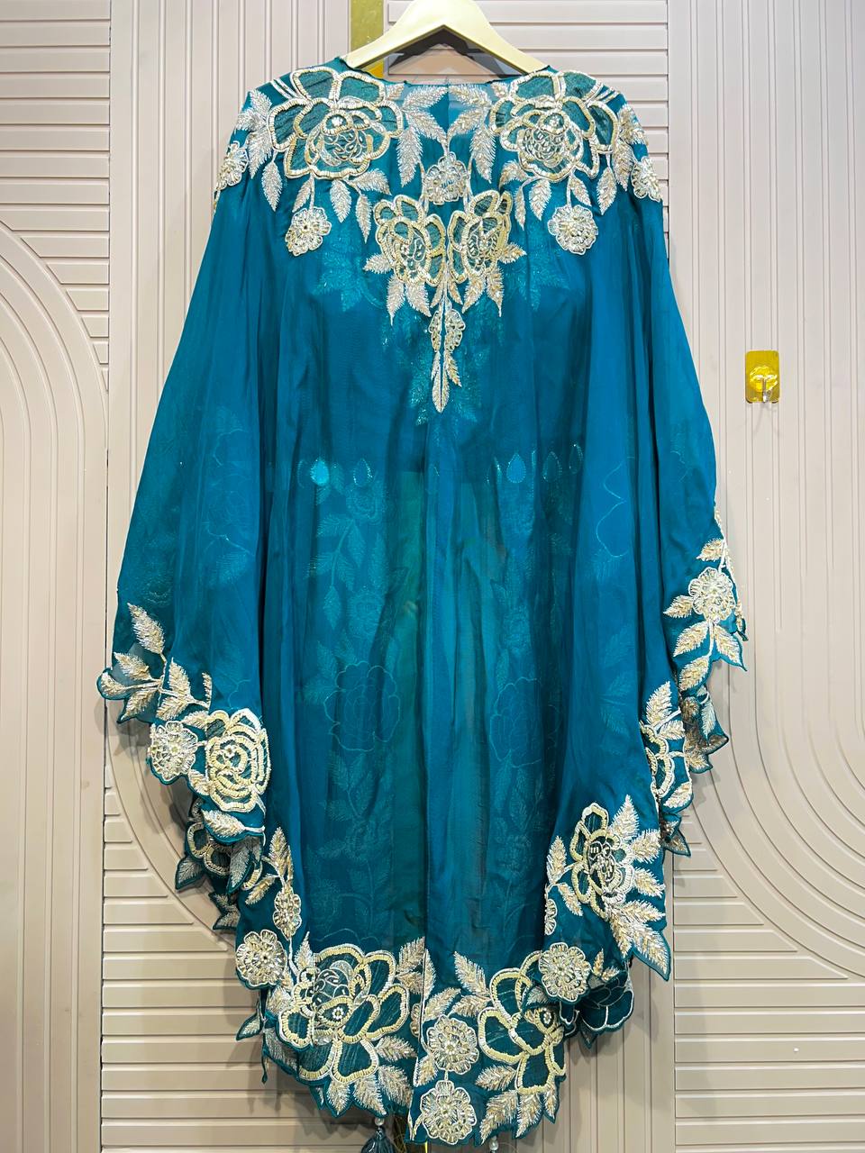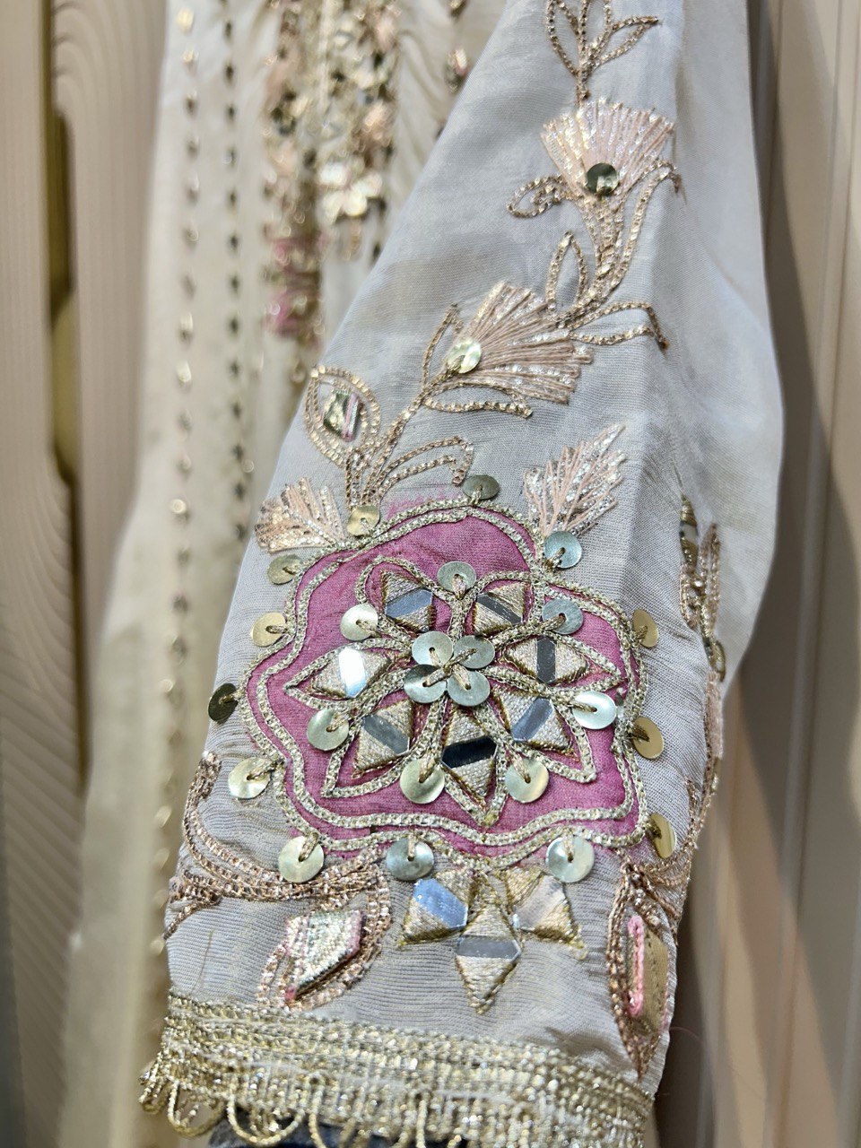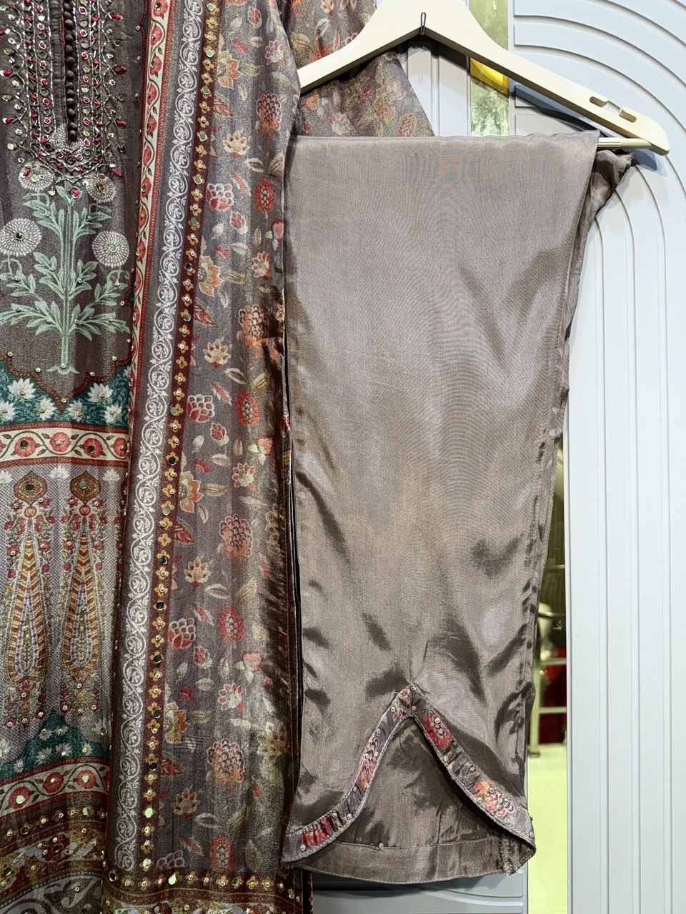 Straight Suit with V-Neck Leather Work | Designer Cut Work Dupatta – Fabdilli
