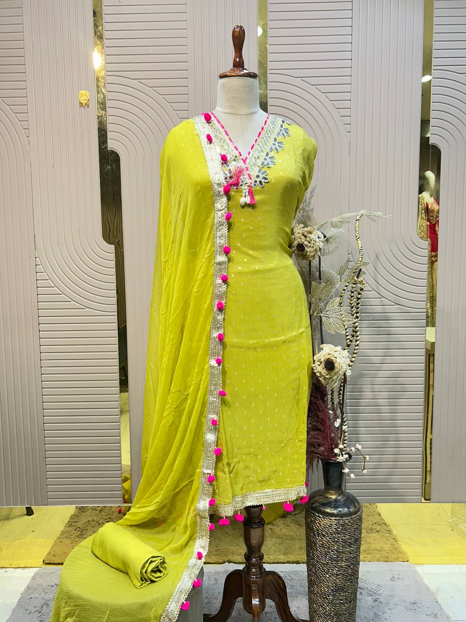 Shimmer Fabric Gota and Mirror Work Unstitched Suit Set