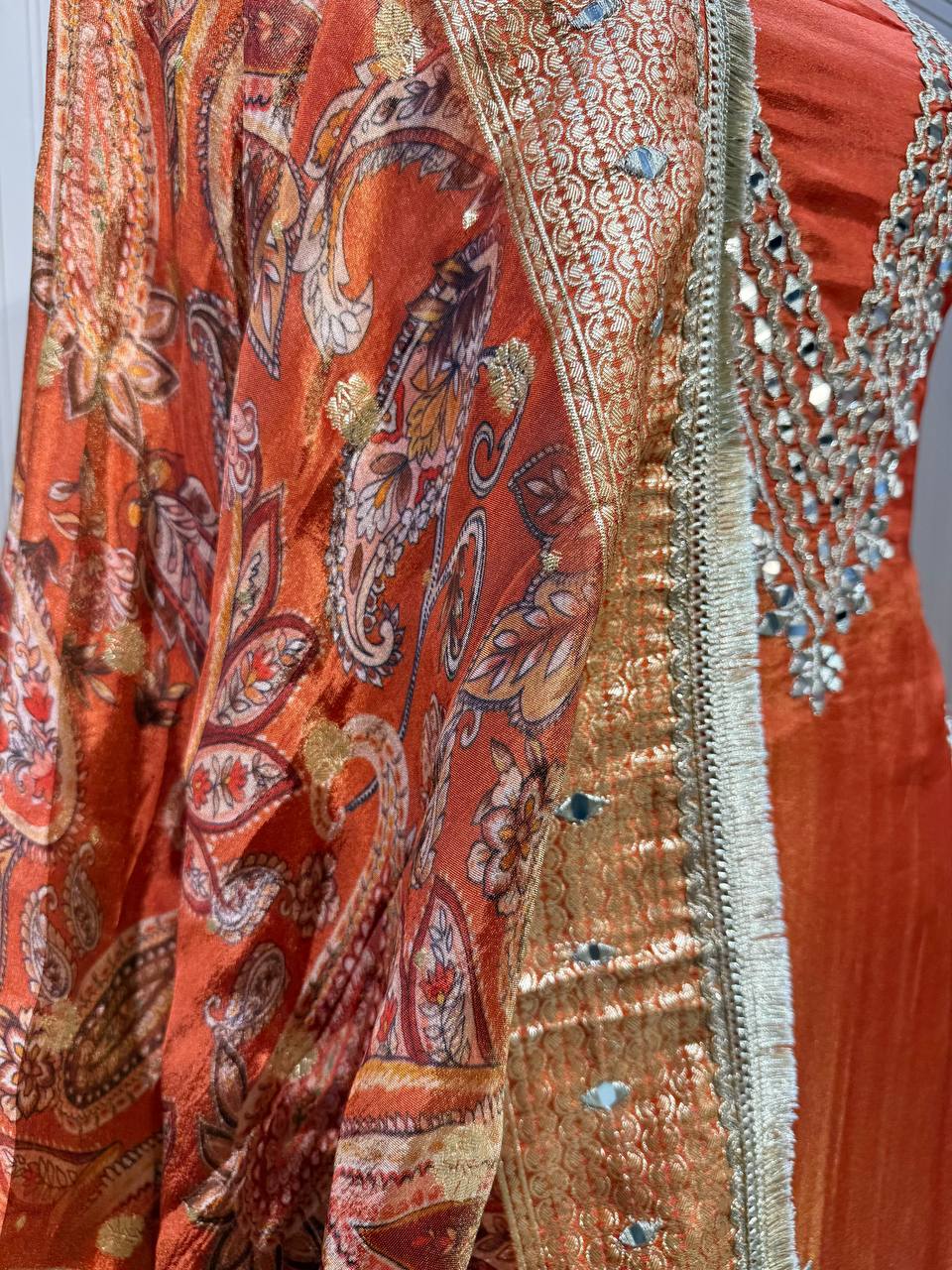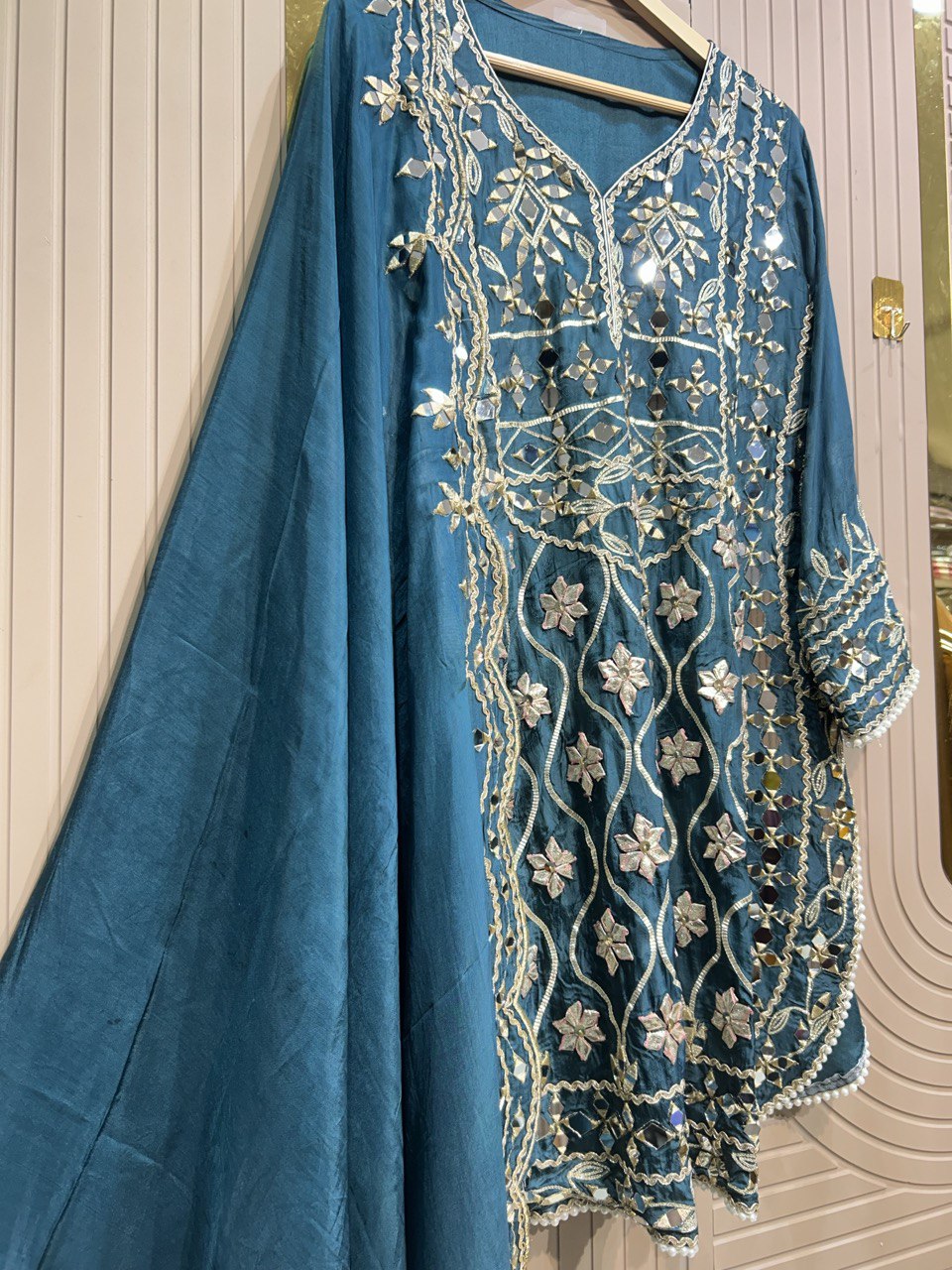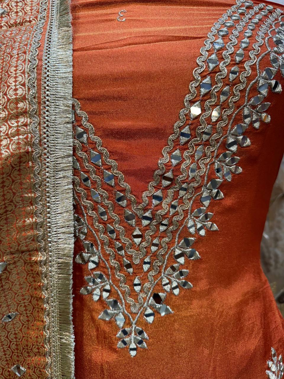 Beautiful Gota Mirror work Shirt With Stylish Cutwork Dupatta
