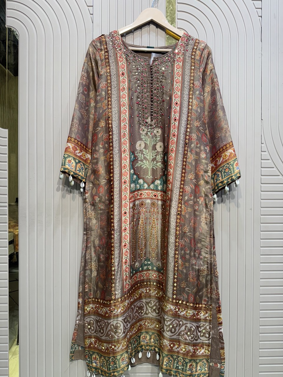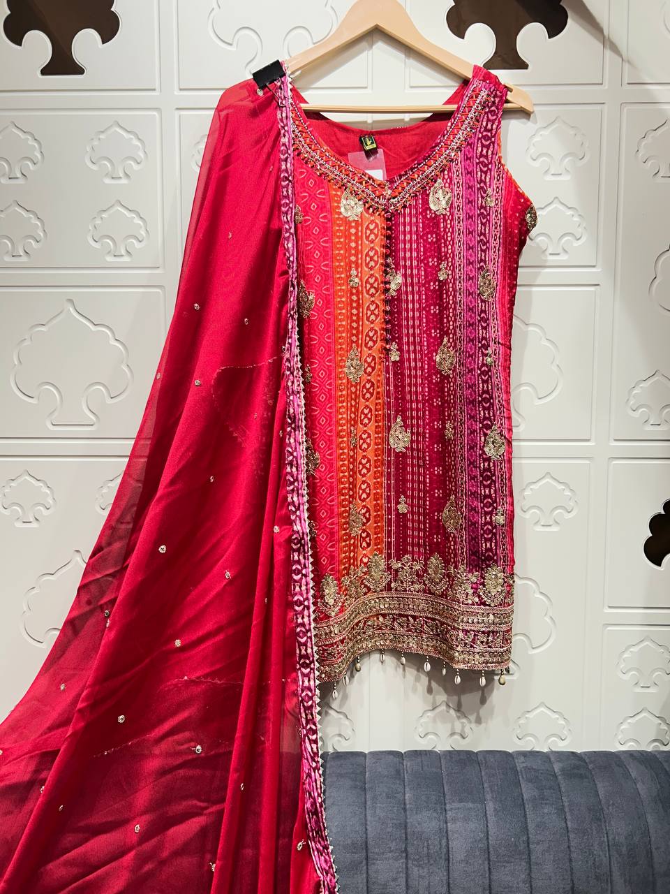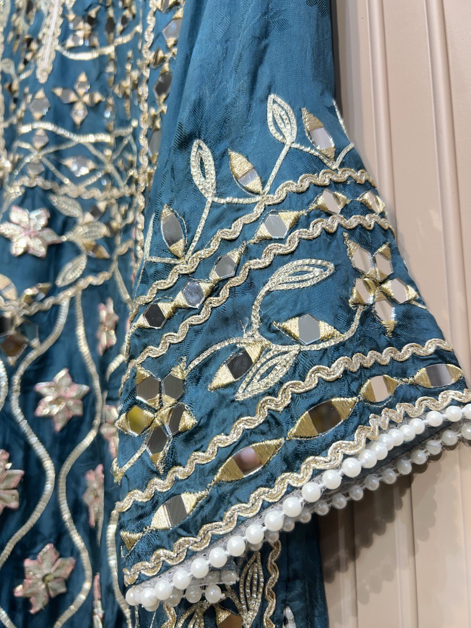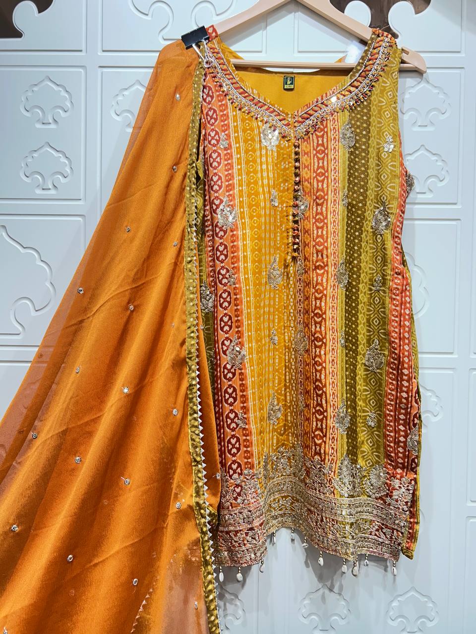Beautiful Gota Mirror work Shirt With Stylish Cutwork Dupatta