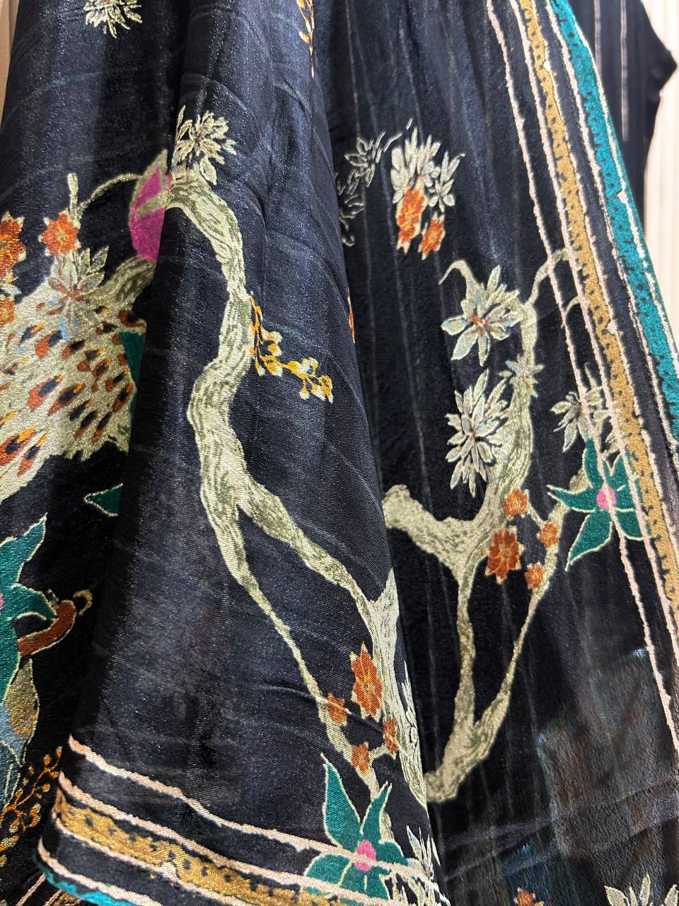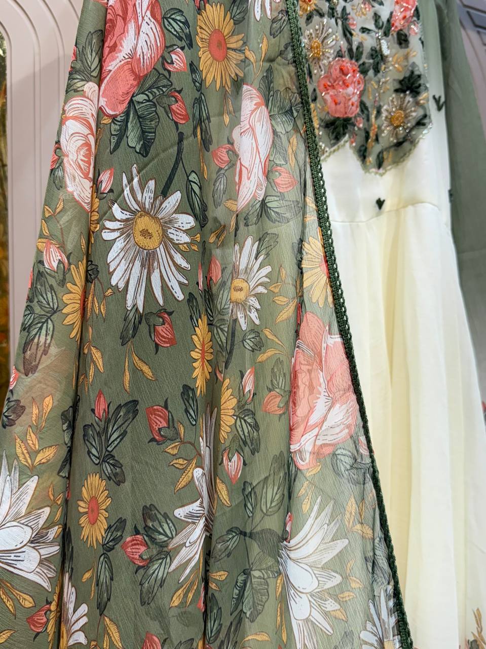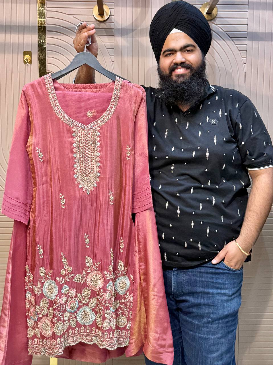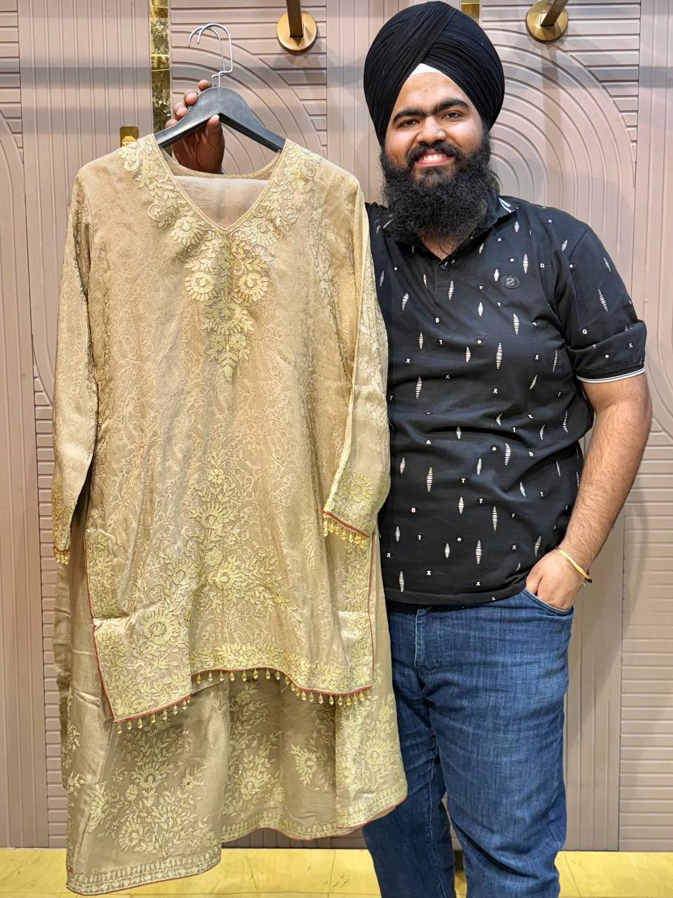 Glass Tissue Fabric Unstitched Suit ek soft, graceful aur luxurious ethnic creation hai, jo delicate glass tissue fabric par beautifully crafted applique work shirt aur dupatta ke saath design kiya gaya hai ✨👗