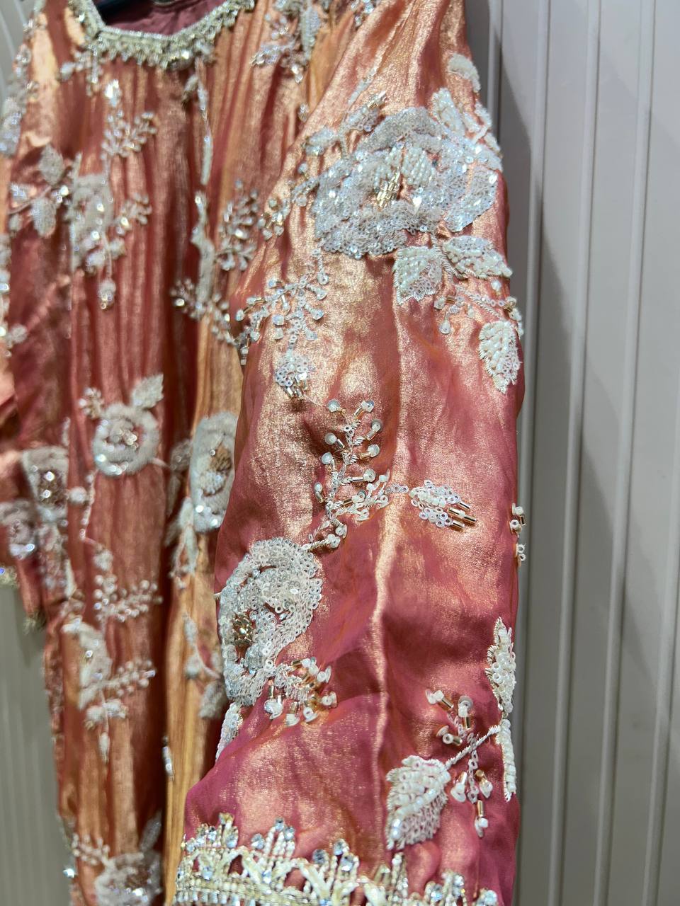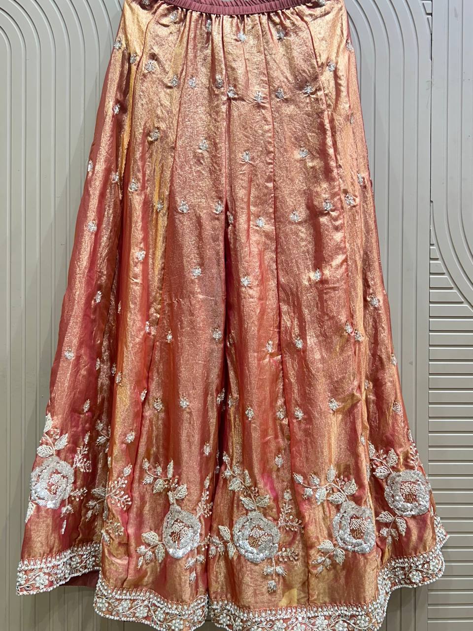 Flower Beads Work Sharara Set on Glass Tissue Fabric