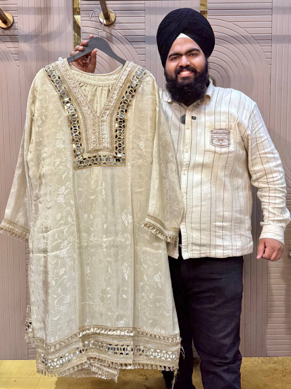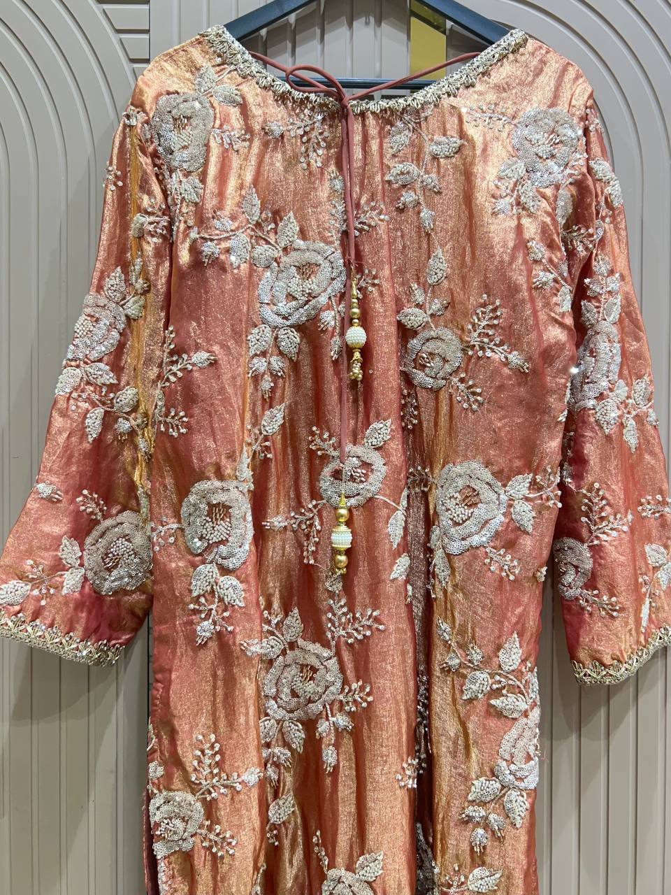 Heavy Beads Work Farshi Pant Set with Designer Shirt