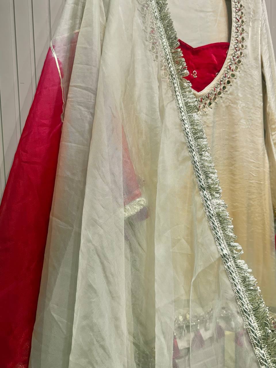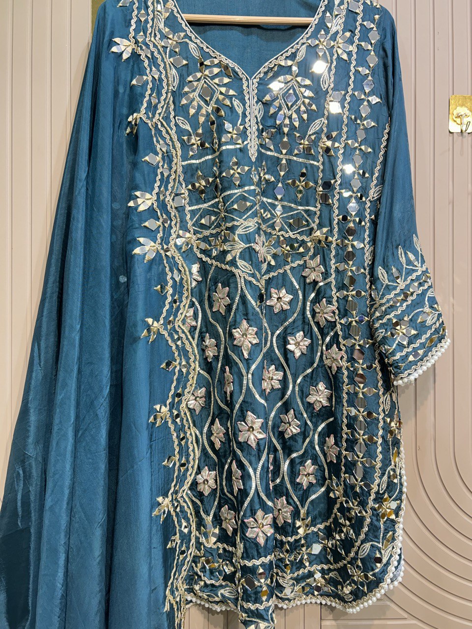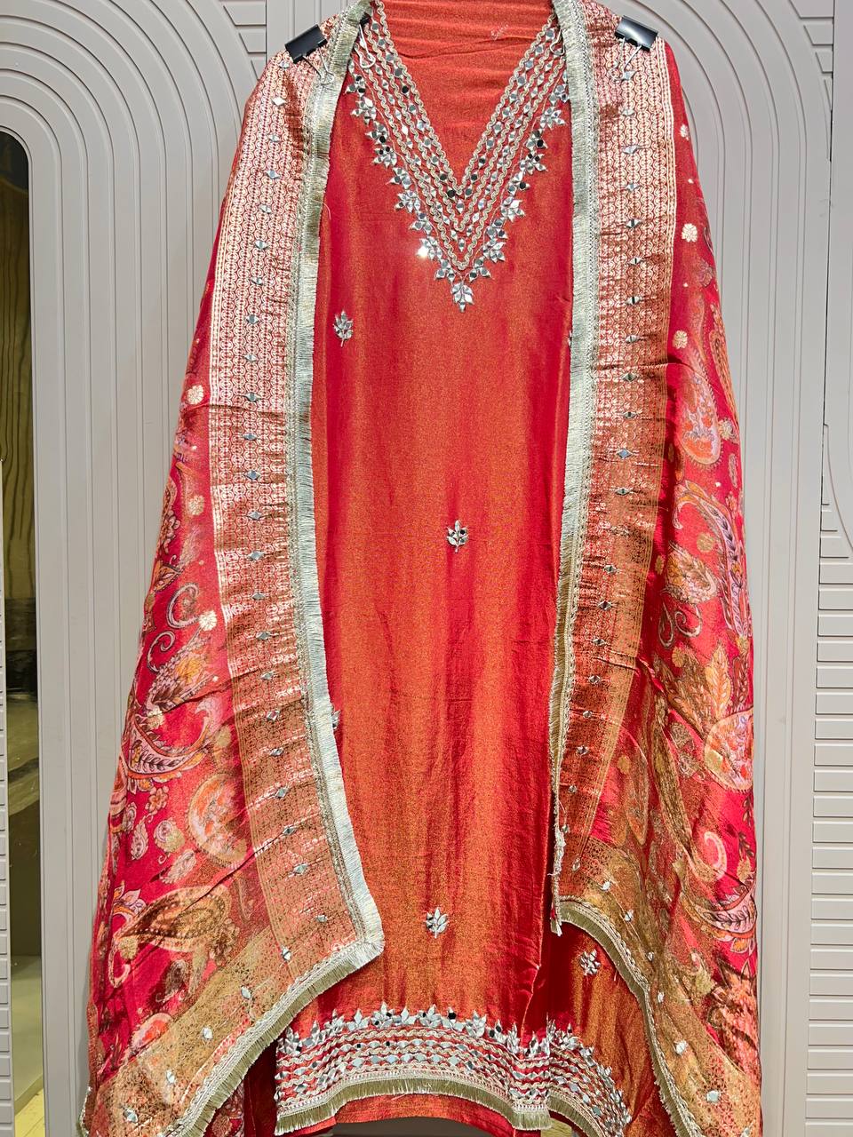Beautiful Gota Mirror work Shirt With Stylish Cutwork Dupatta