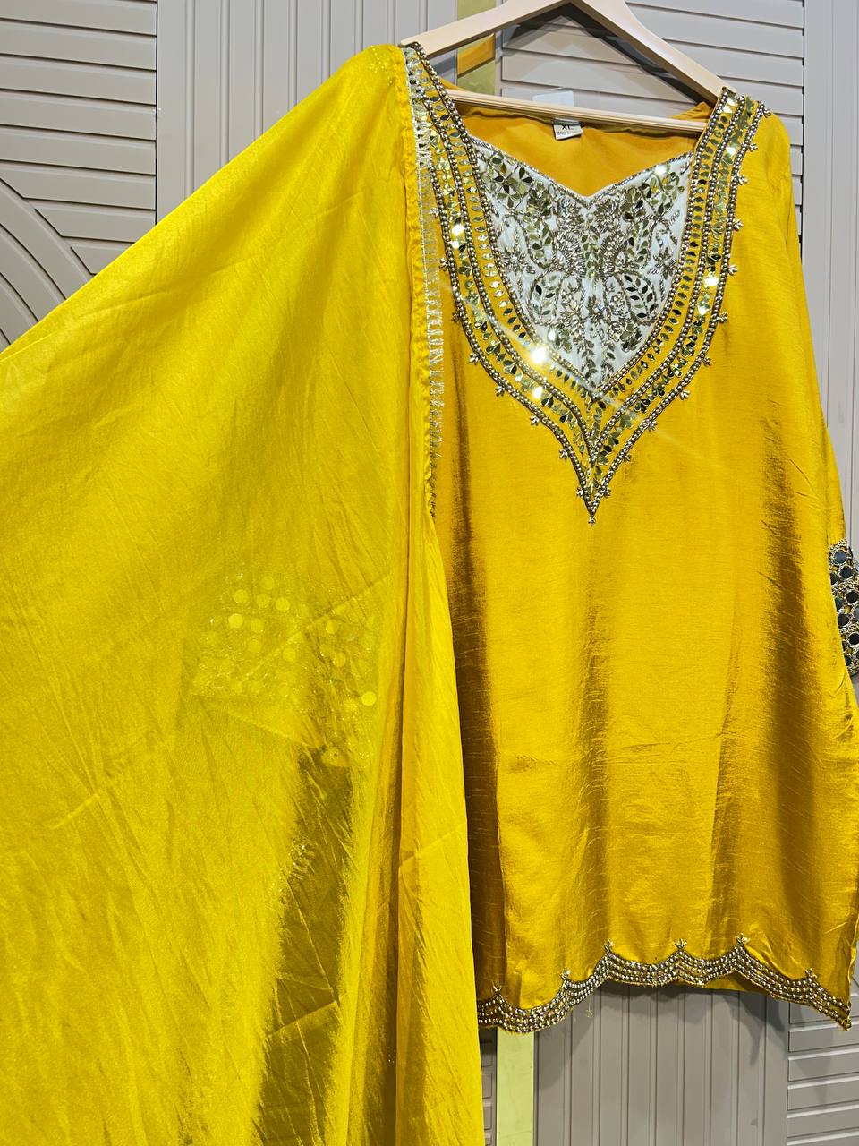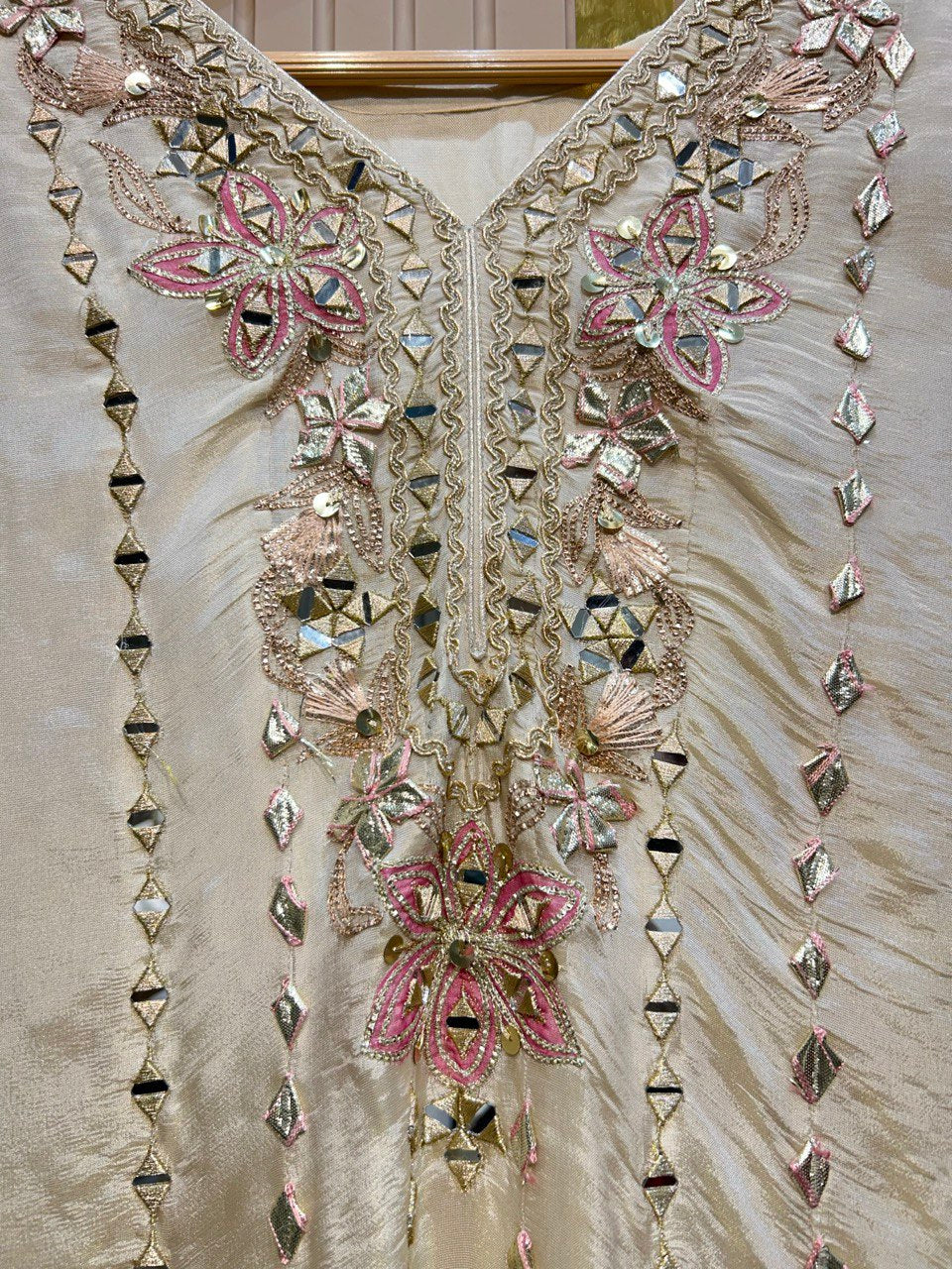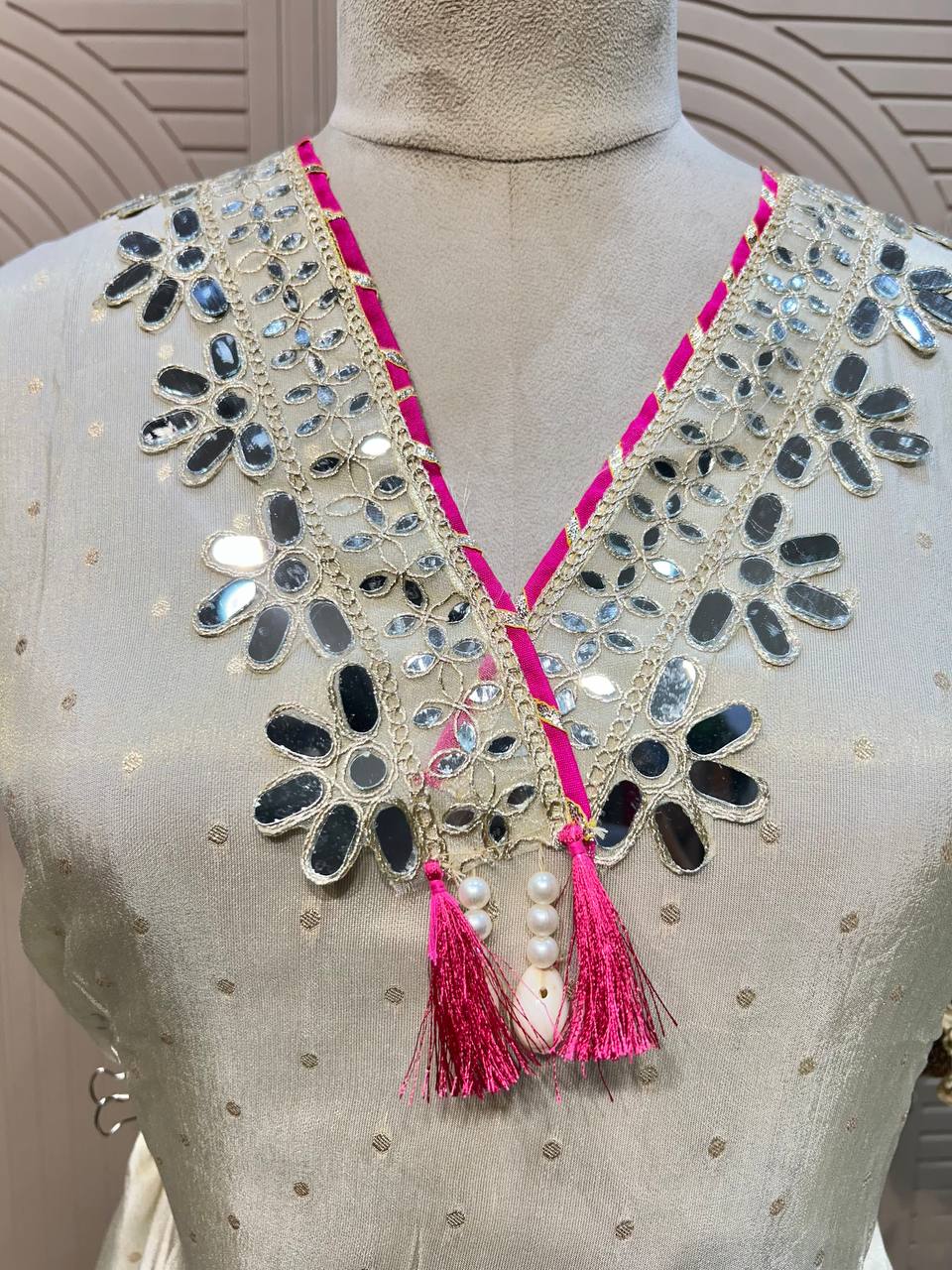 Beautiful Gota Mirror work Shirt With Stylish Cutwork Dupatta