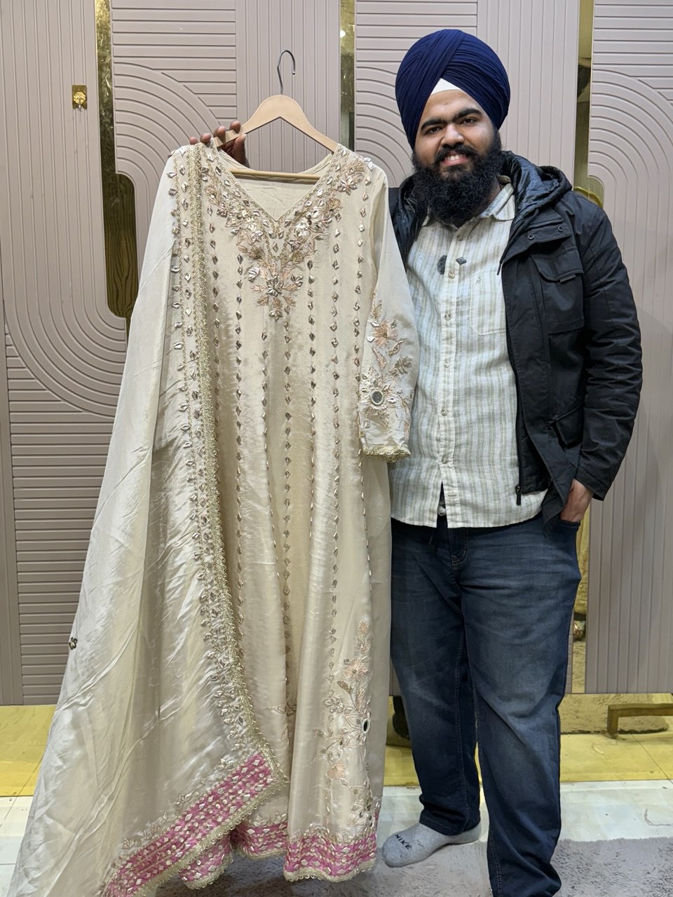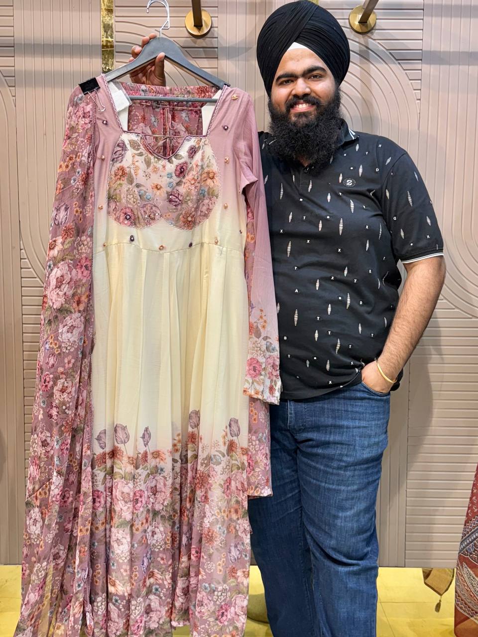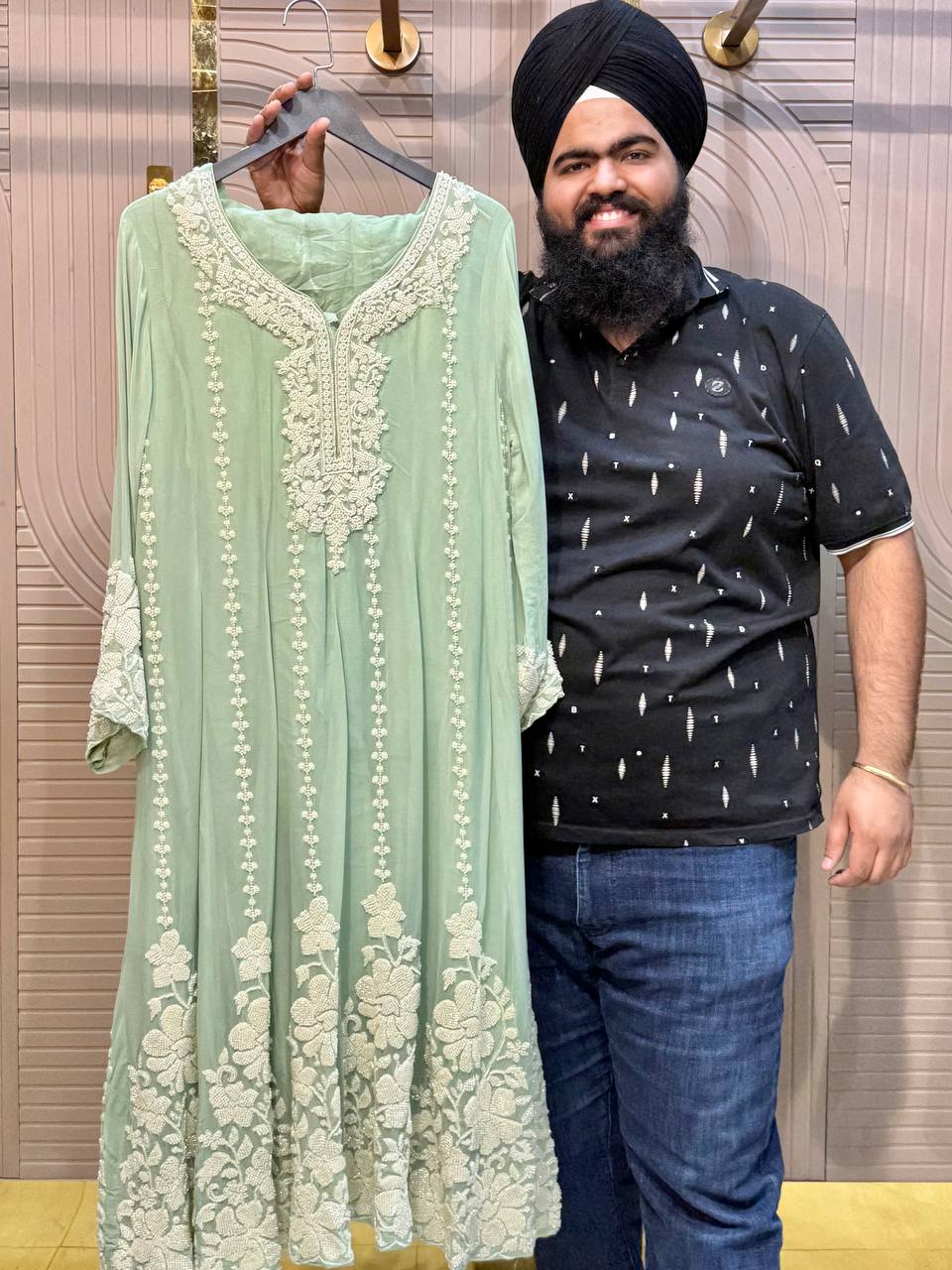 Front & Back Heavy Beads Work Anarkali Set with Dupatta