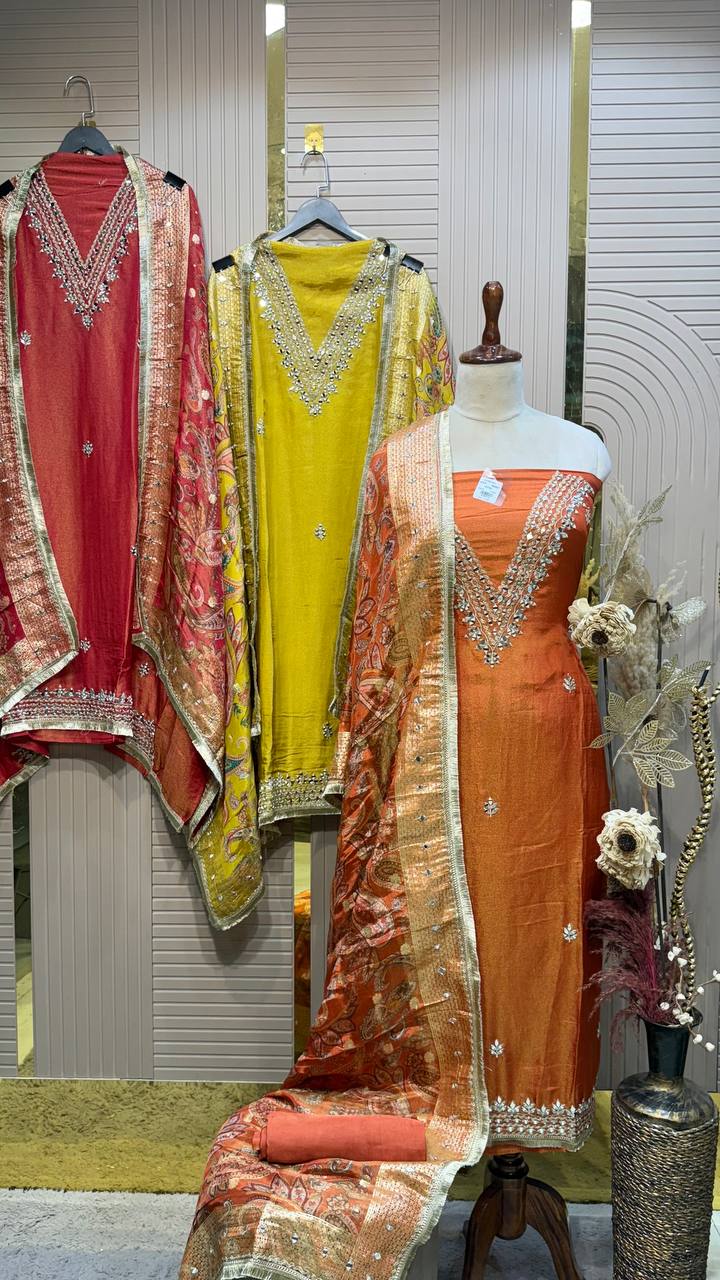Shimmer Fabric Gota and Mirror Work Unstitched Suit Set