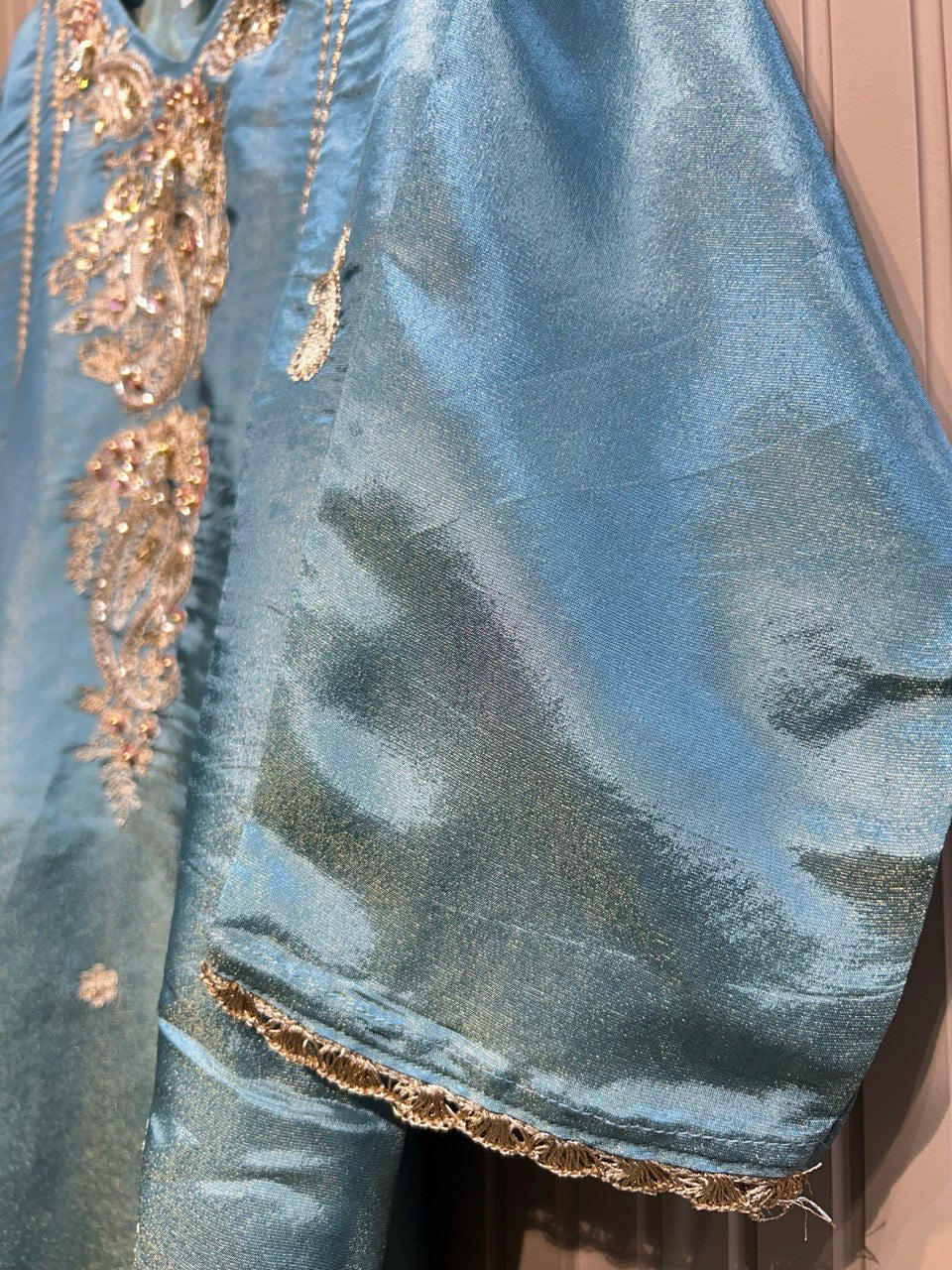 Beads & Handwork Heavy Garara Set on Shimmer Fabric