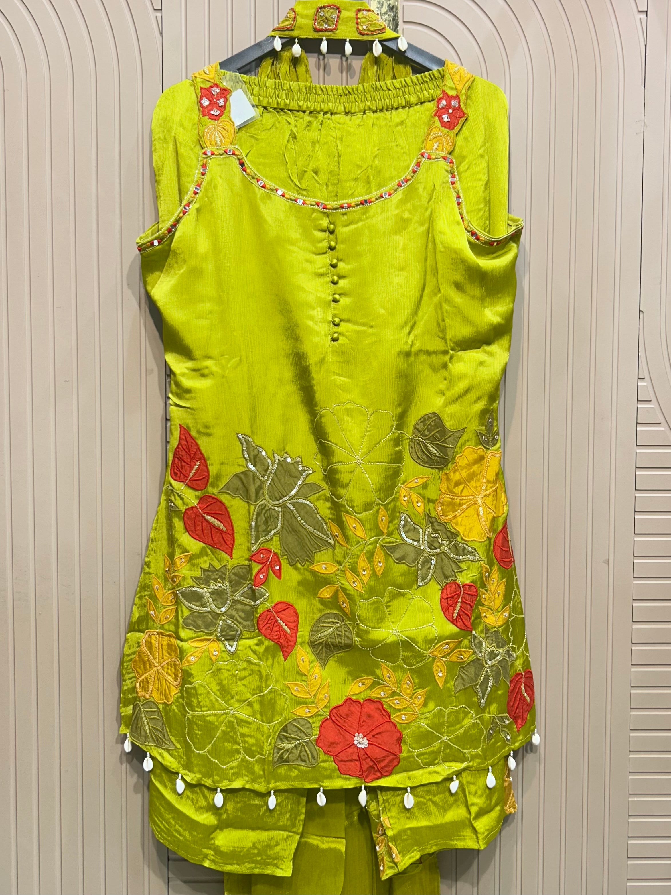 Sleeveless design aur fine handwork outfit ko light, graceful aur fashion-forward feel deta hai. Yeh article casual outings, brunch looks aur Indo-western styling ke liye perfect choice hai, jo effortless elegance create karta hai.