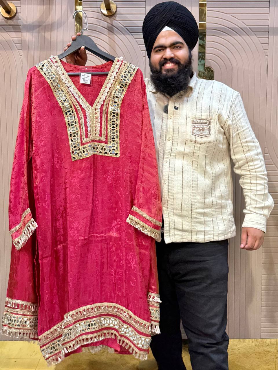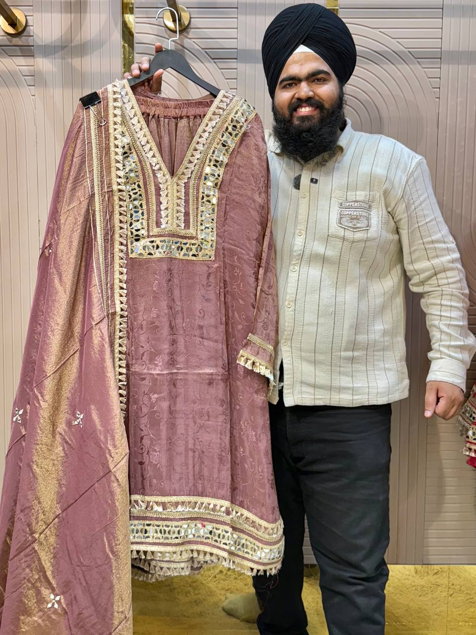 • Premium shimmer fabric with mirror work