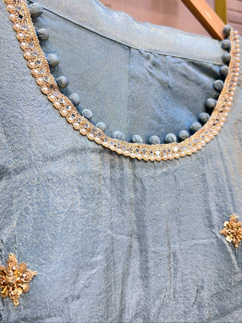 • Peacock-inspired handwork detailing