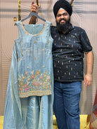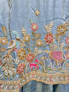 Short shirt par detailed peacock hand embroidery is set ko statement look deti hai, jabki flowy sharara aur soft net dupatta overall outfit ko festive aur classy appeal dete hain. Ye ensemble festive functions, parties aur special occasions ke liye perfect choice hai.